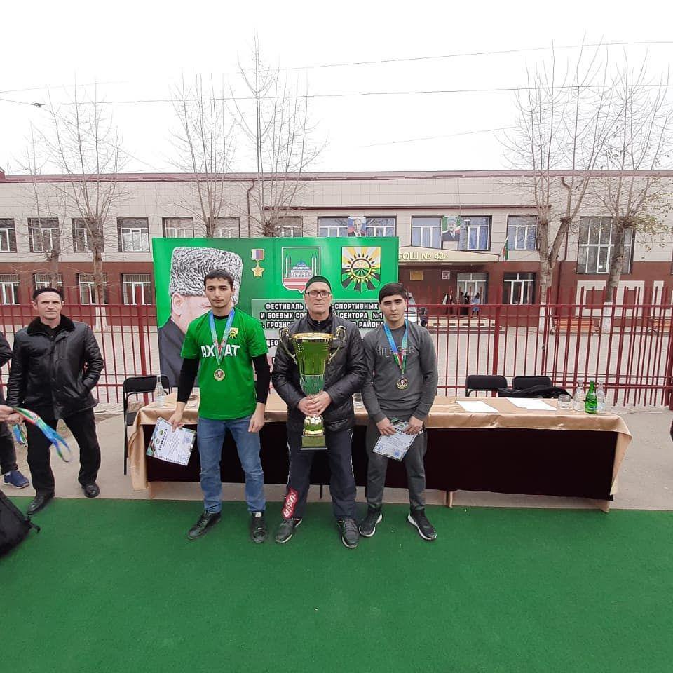 27.11.2019Цураев Асхьаб и Эдиев Хасмагомед учащиеся МБОУ "СОШ 1 с.Комсомольское" имени Героя Советского Союза А.И.Идрисова приняли участие в фестивале военно-спортивных и боевых состязаний сектора N 1 г.Грозного и Грозненского района среди учащихся общеобразовательных учреждений, посвященный памяти Первого Президента ЧР, Героя России А-Х. А.Кадырова и заняли 1-ые места в номинациях "Метание гранаты" и "Армрестлинг".