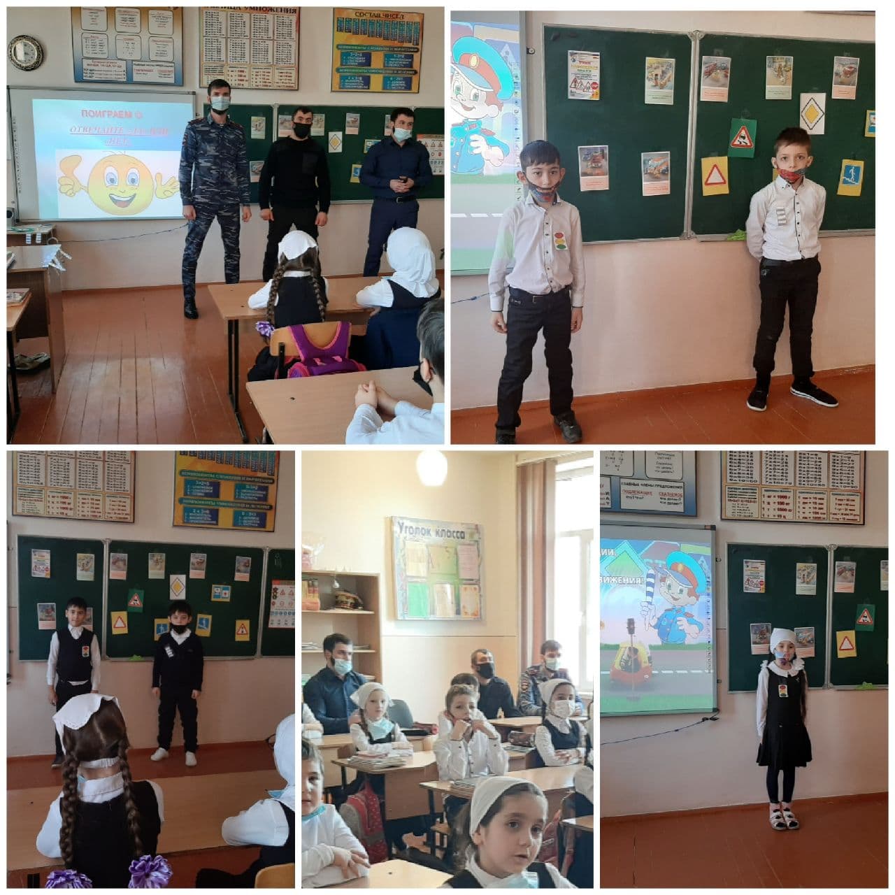 19.01.2021МБОУ " СОШ N 1 с. Комсомольское" классный руководитель 2 "а" класса Берсанова Б.Ч. провела классный час “Знайте, правила движения, как таблицу умножения”.Приглашённые: директор И.С.Махмудов, инспектор ПДН ОМВД России по г. Аргун лейтенант полиции Абдурзаков Э.М. Учащиеся показали хорошие знания ПДД, поведения на дорогах. Дети с удовольствием воспроизводили ситуации на дорогах, выступали в роли регулировщиков ДТП, используя правила дорожного движения.
