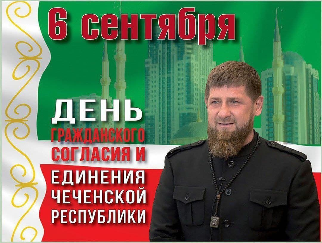 06.09.2021В соответствии с Указом Первого Президента Чеченской Республики, Героя России Ахмата-Хаджи Кадырова (Дала г1азот къобалдойла цуьнан!) с 2002 года 6-го сентября отмечается День Чеченской Республики или День гражданского согласия и единения. Ахмат-Хаджи Абдулхамидович прекрасно понимал, что только через единство и укрепление дружбы между народами можно строить светлое будущее, развиваться, жить в мире и согласии. Наш Первый Президент объединил расколотое общество и остановил беззаконие, став инициатором проведения референдума, в ходе которого жители республики, независимо от национальной и религиозной принадлежности, сделали однозначный выбор в пользу мира, дружбы, стабильности и развития. Поздравляем Главу Чеченской Республики, Героя России Рамзана Ахматовича Кадырова и всех жителей ЧР с Днем гражданского согласия и единения. Крепкого здоровья, всех благ. Дала т1аьхье беркате йойла!