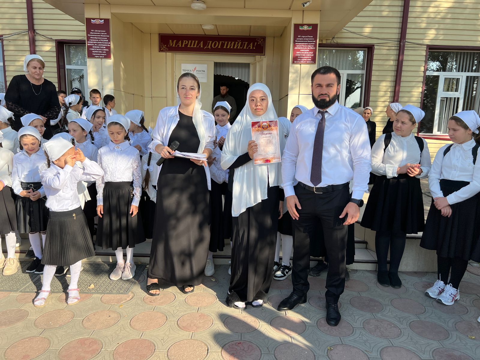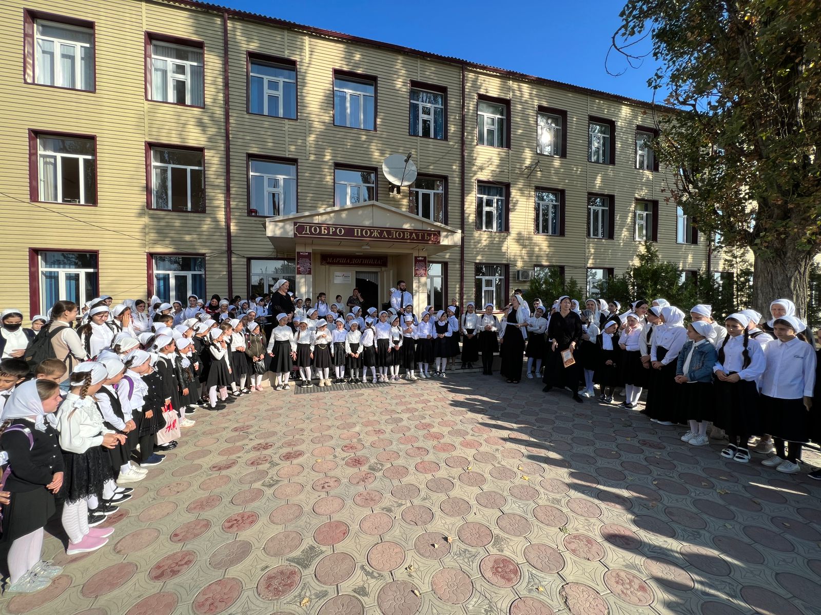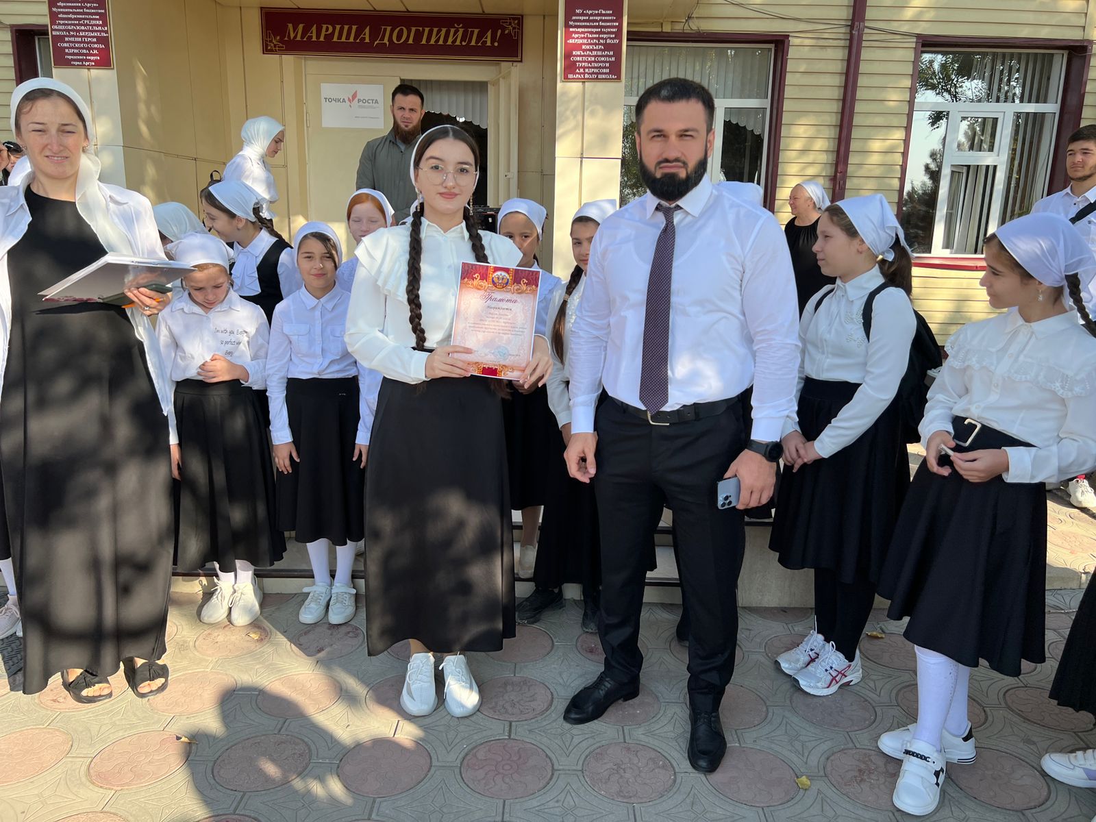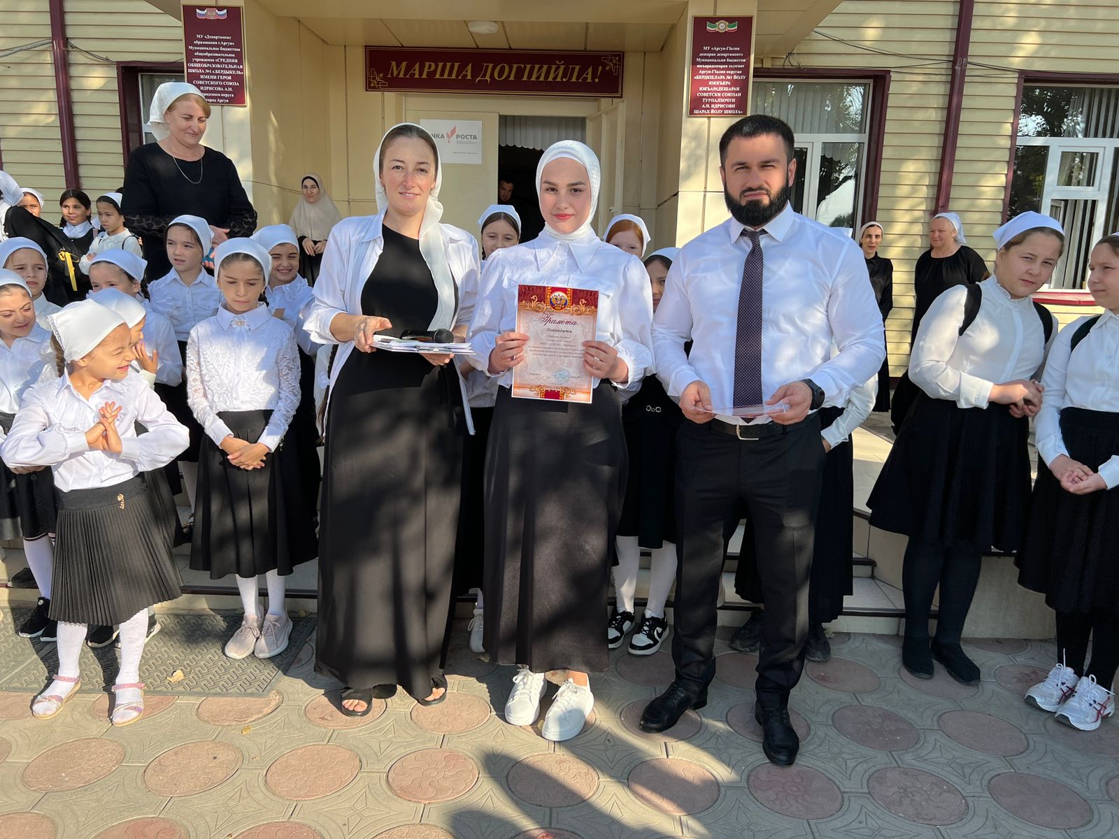 В МБОУ «СОШ №1 с.Бердыкель» прошла торжественная церемония поднятия государственного флага Российской Федерации и Чеченской Республики