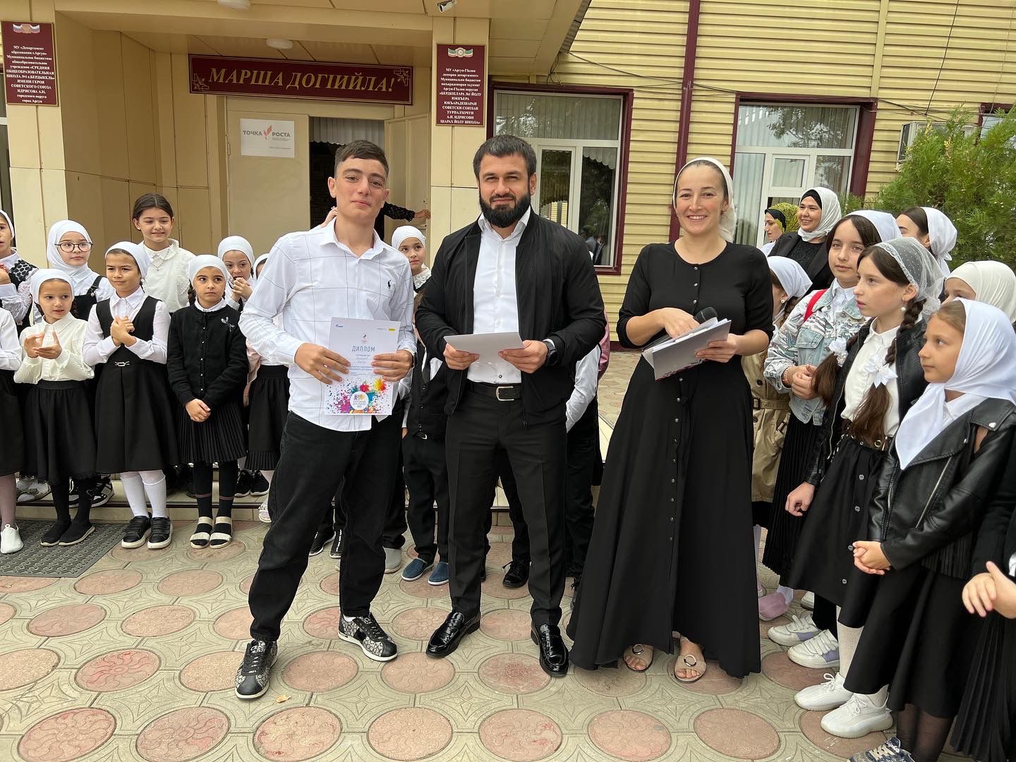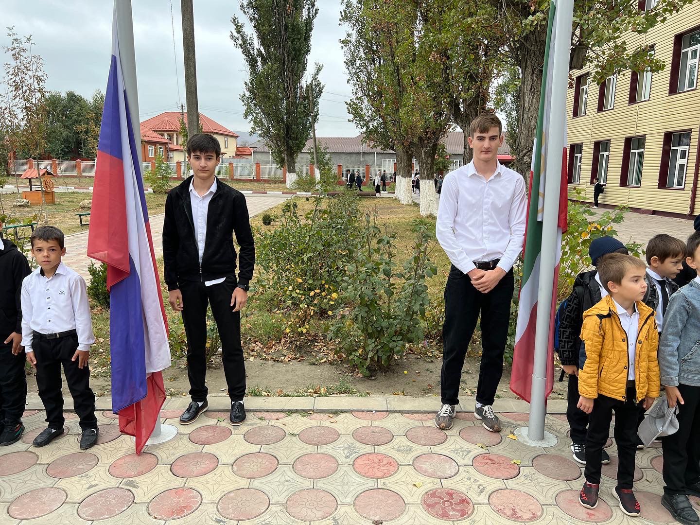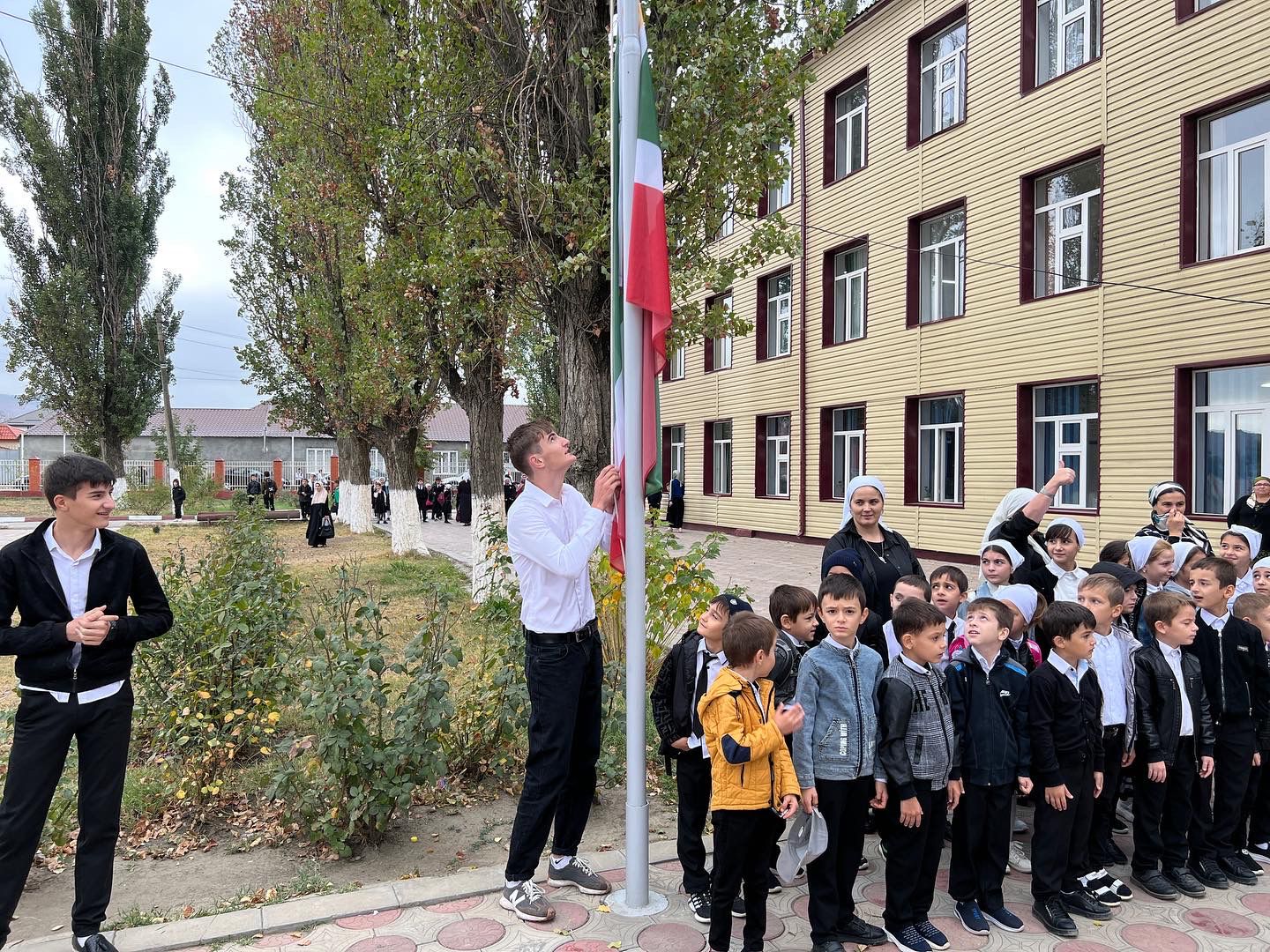 Сегодня в МБОУ «СОШ №1 с.Бердыкель» прошла торжественная церемония поднятия государственных флагов Российской Федерации и Чеченской Республики.