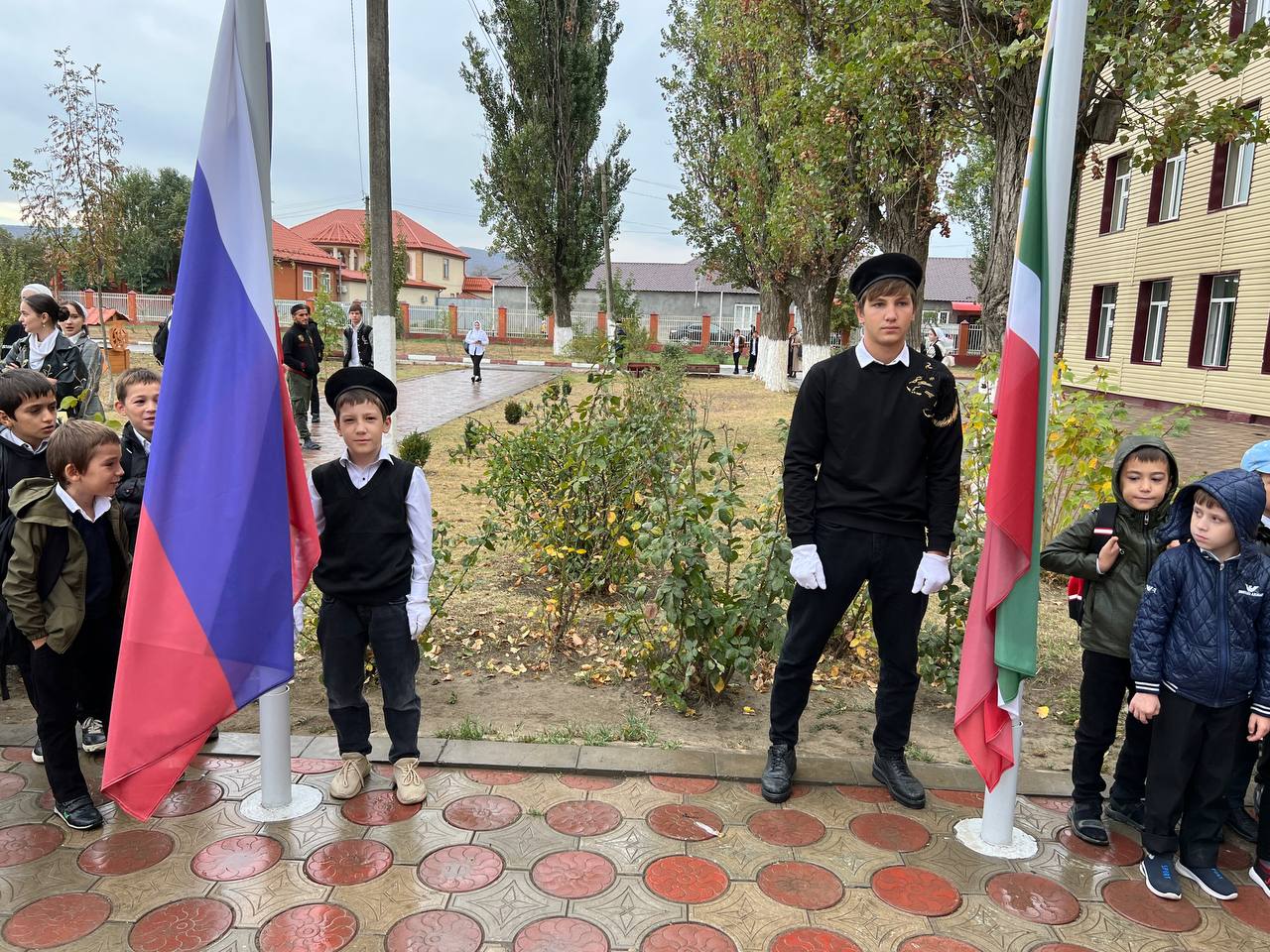 Сегодня в МБОУ «СОШ №1 с.Бердыкель» прошла торжественная церемония поднятия государственных флагов Российской Федерации и Чеченской Республики.