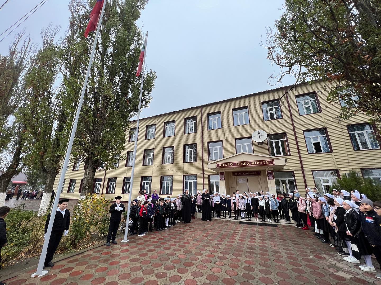 Сегодня в МБОУ «СОШ №1 с.Бердыкель» прошла торжественная церемония поднятия государственных флагов Российской Федерации и Чеченской Республики.