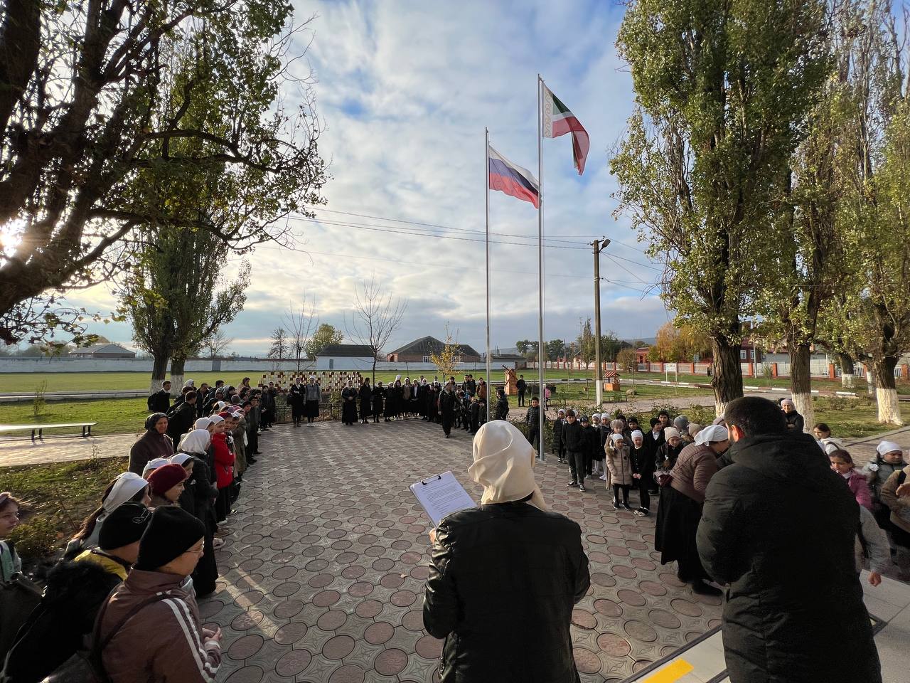 07.11.2022Сегодня в МБОУ «СОШ №1 с.Бердыкель» прошла первая после каникул торжественная церемония поднятия государственных флагов Российской Федерации и Чеченской Республики.