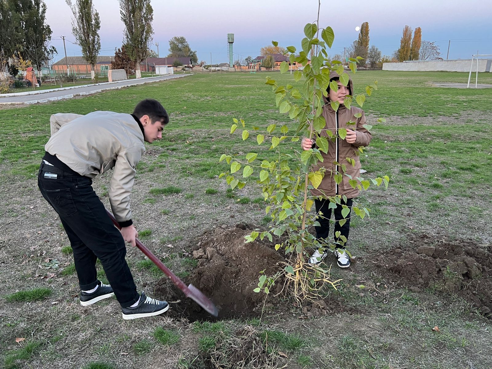 Учащиеся высадили саженцы различных пород плодовых и косточковых деревьев. С большим энтузиазмом дети выкапывали ямки для деревьев, а затем обильно их поливали. Через некоторое время это пустое место на поле возле школы будет всех радовать тенью и своими плодами. Всего участники акции высадили около 20 саженцев.