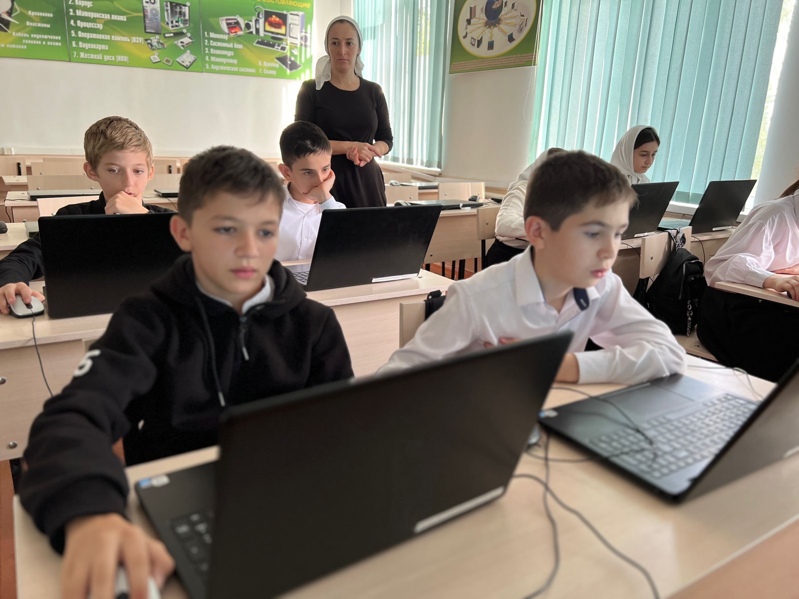 Перед началом тестирования на ноутбуках, ребята в форме диалога обсудили тему выбора своей будущей профессии. Будущим выпускникам напомнили о том, какие способности нужно развивать для определенной профессии, какие профориентационные мероприятия можно посетить в республике и где учиться выбранной специальности.