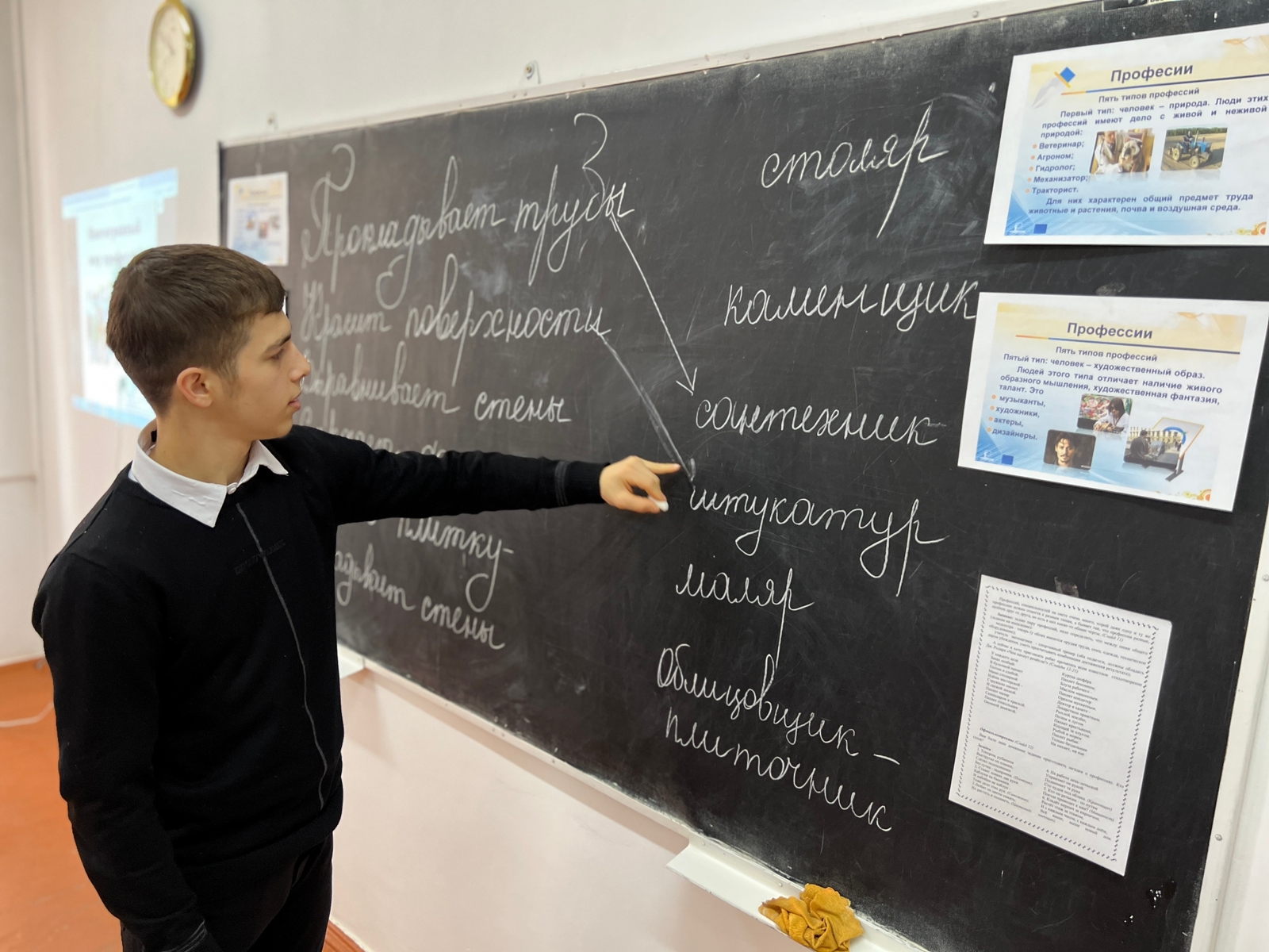 Учитель рассказал будущим выпускникам о профессиях, которые востребованы на данный момент в стране, познакомил с профориентационной литературой, имеющейся в библиотеке. Также поиграли в игры. К примеру, игра на соответствия, где нужно было связать род деятельности с определенной профессией. Поговорили и о знаменитых персонажах фильмов, мультфильмов и книг, известных благодаря своим профессиям.