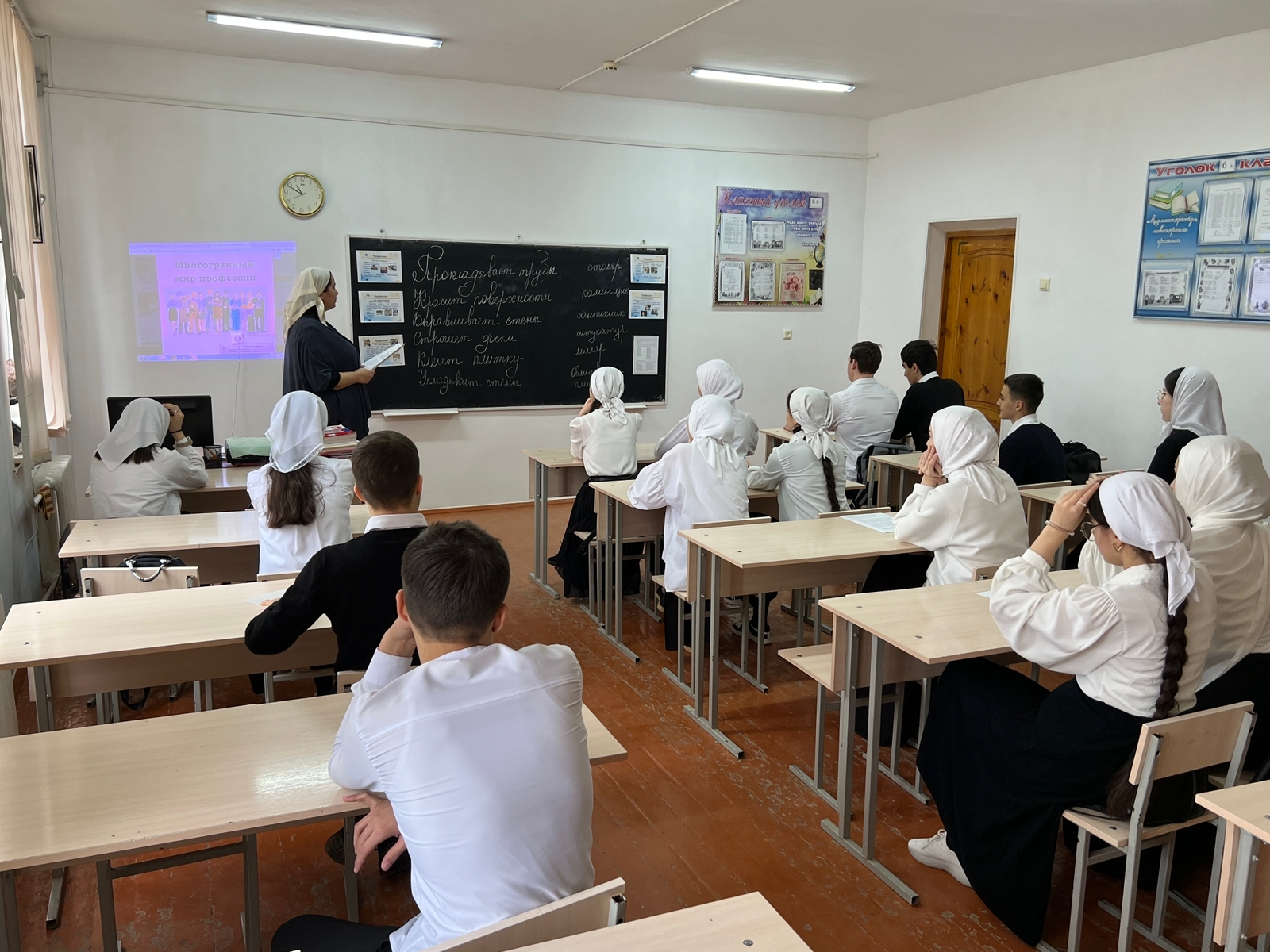 19.12.2022В рамках реализации федерального проекта «Успех каждого ребенка» национального проекта «Образование» в МБОУ «СОШ №1 с.Бердыкель» прошло мероприятие «Час профориентации». В нем приняли участие школьники 10-х классов.