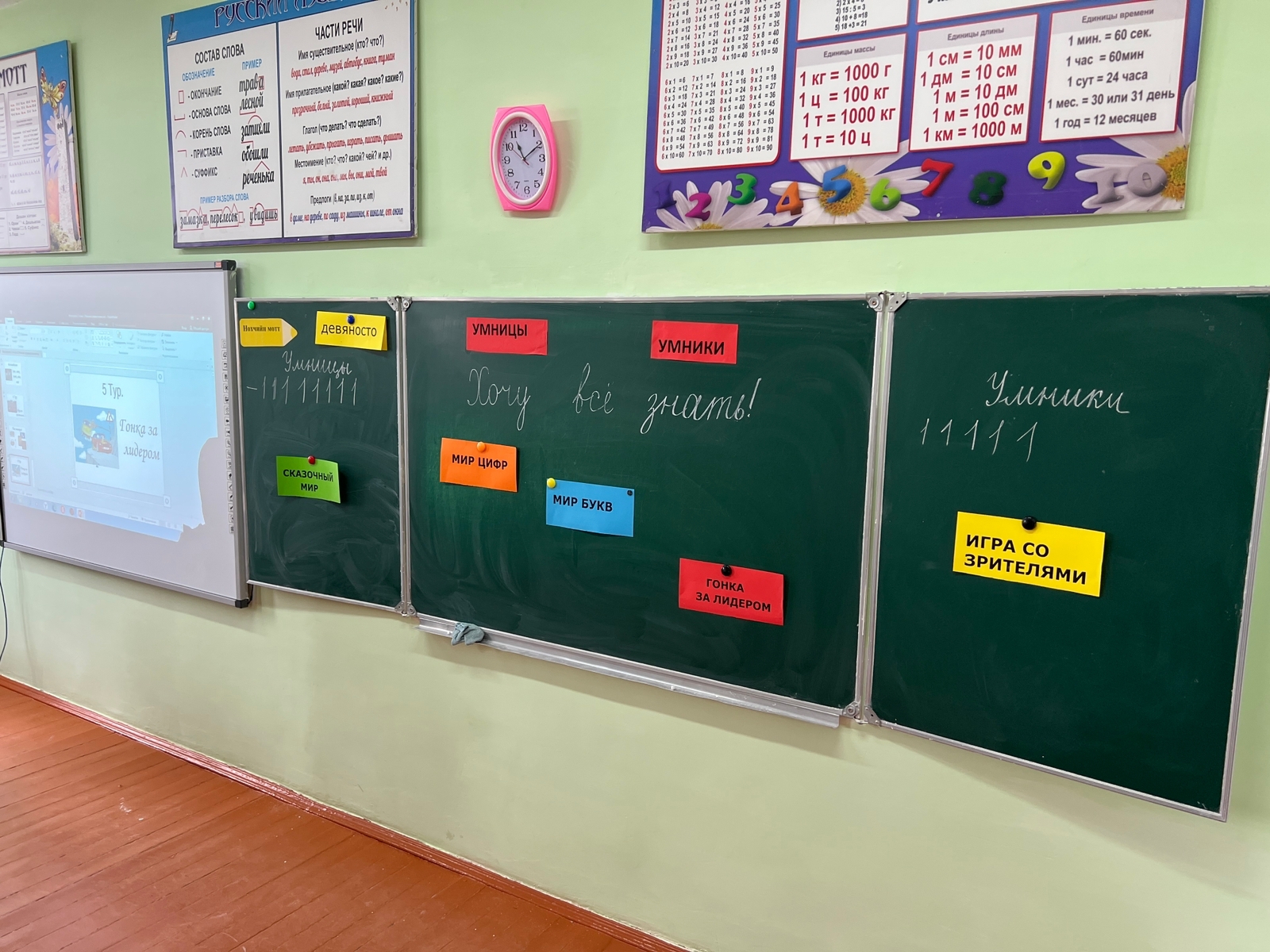 Для интеллектуальной викторины были отобраны наиболее интересные вопросы по всем школьным предметам. Игра растянулась на несколько раундов. Отвечая на интересные вопросы, участники проявили свою эрудицию и логическое мышление, умения принимать решения в нестандартной ситуации в условиях ограниченного количества времени. В некоторых вопросах учитель даже не успевала дочитать его до конца, как уже был слышен ответ.