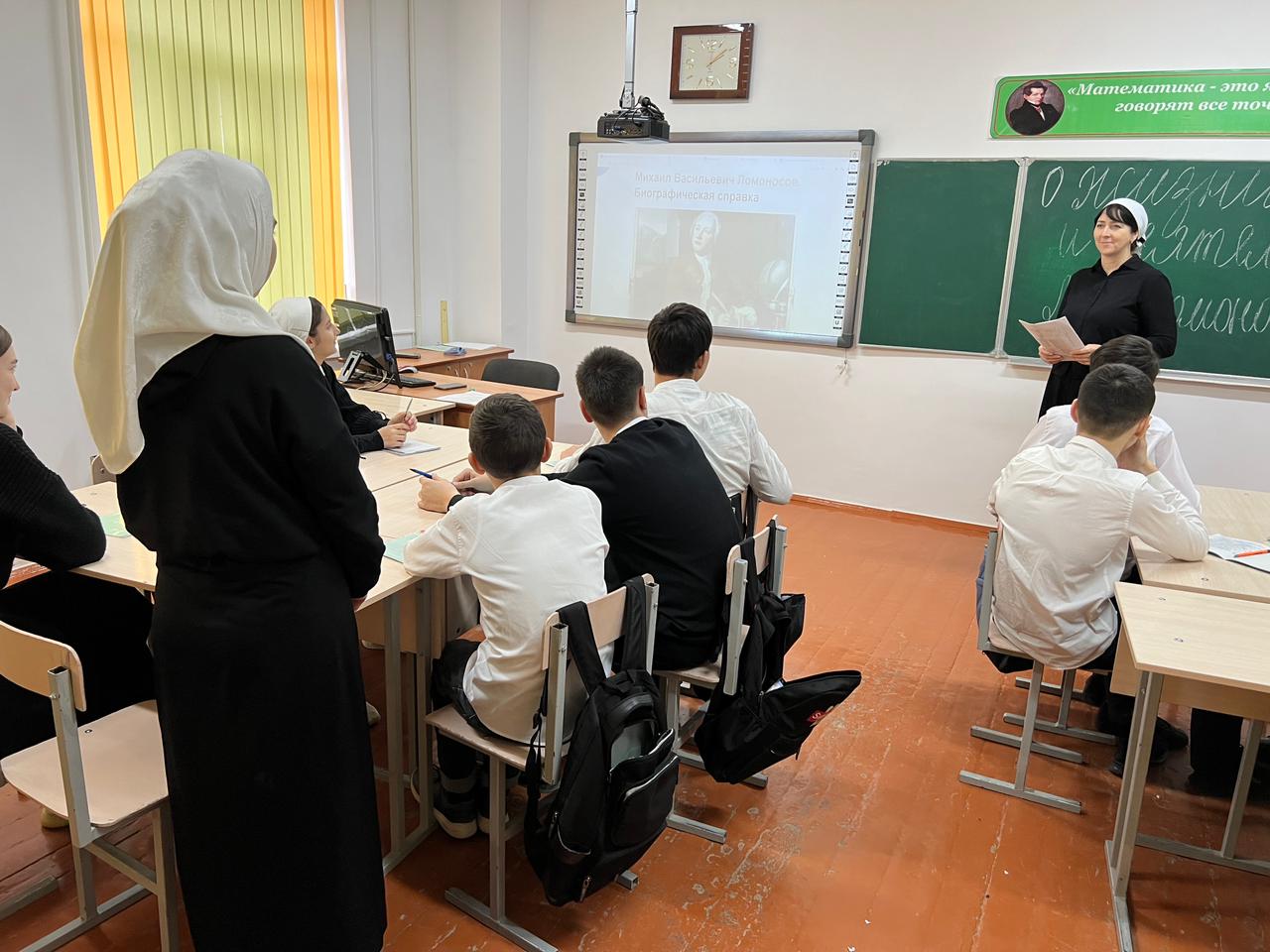 В рамках работы центра образования естественно-научной и технологической направленностей «Точка роста» в МБОУ «СОШ №1 с.Бердыкель» прошло мероприятие, посвященное 311-летию со дня рождения российского просветителя Михаила Васильевича Ломоносова.