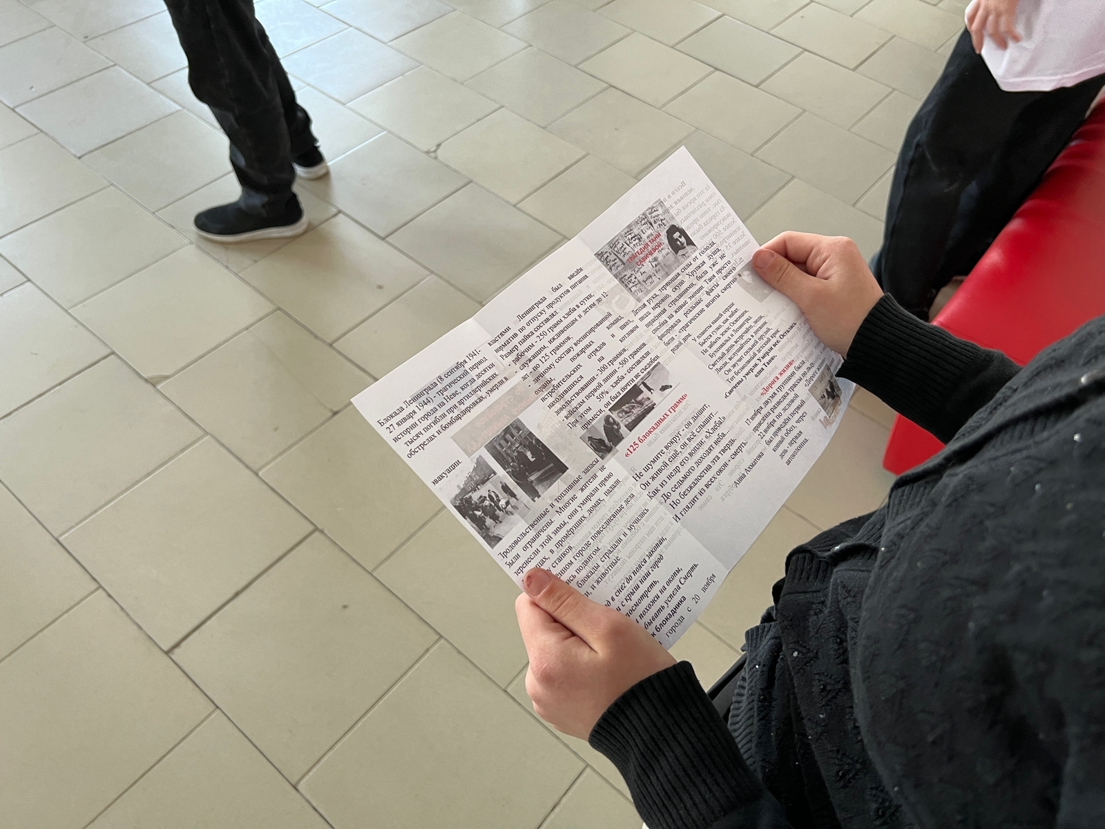 Школьные активисты подготовили интересные буклеты, на которых содержалась информация об этом страшном событии, о том, в каких условиях приходилось жить людям во времена блокады, датах начала и ее конца и многое другое. Ребята раздавали буклеты на переменах, рассказывали сами об этом событии и пытались максимально привлечь внимание остальных ребят к событиям, произошедшим во времена Великой Отечественной Войны.