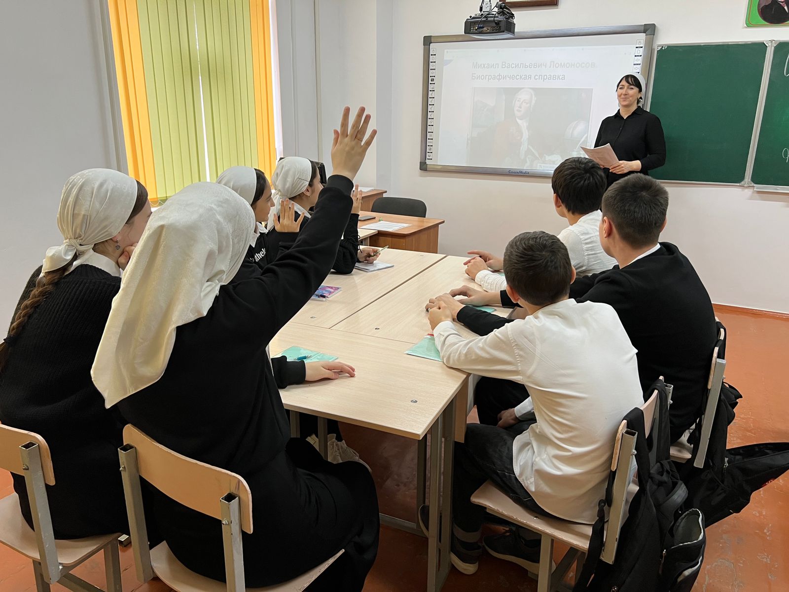 25.01.2023В рамках реализации федерального проекта «Успех каждого ребенка» национального проекта «Образование» в МБОУ «СОШ №1 с.Бердыкель» прошло мероприятие, посвященное жизни и деятельности первого русского учёного-естествоиспытателя мирового значения, поэта, заложившего основы современного русского литературного языка, художника, историка, поборника развития отечественного просвещения, науки и экономики, основоположника молекулярно-кинетической теории Михаила Васильевича Ломоносова.