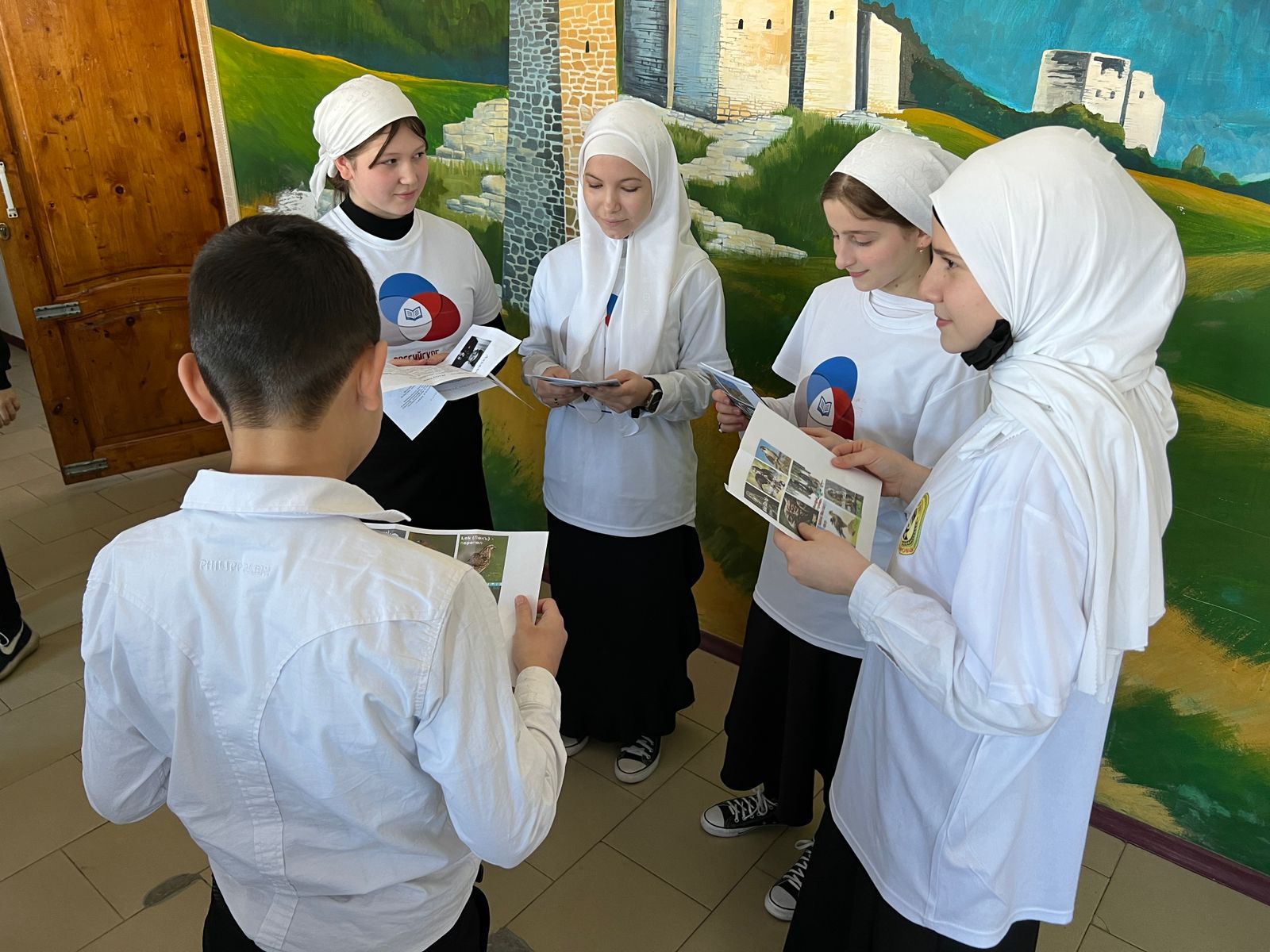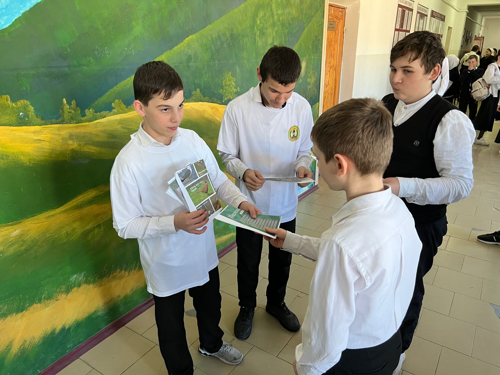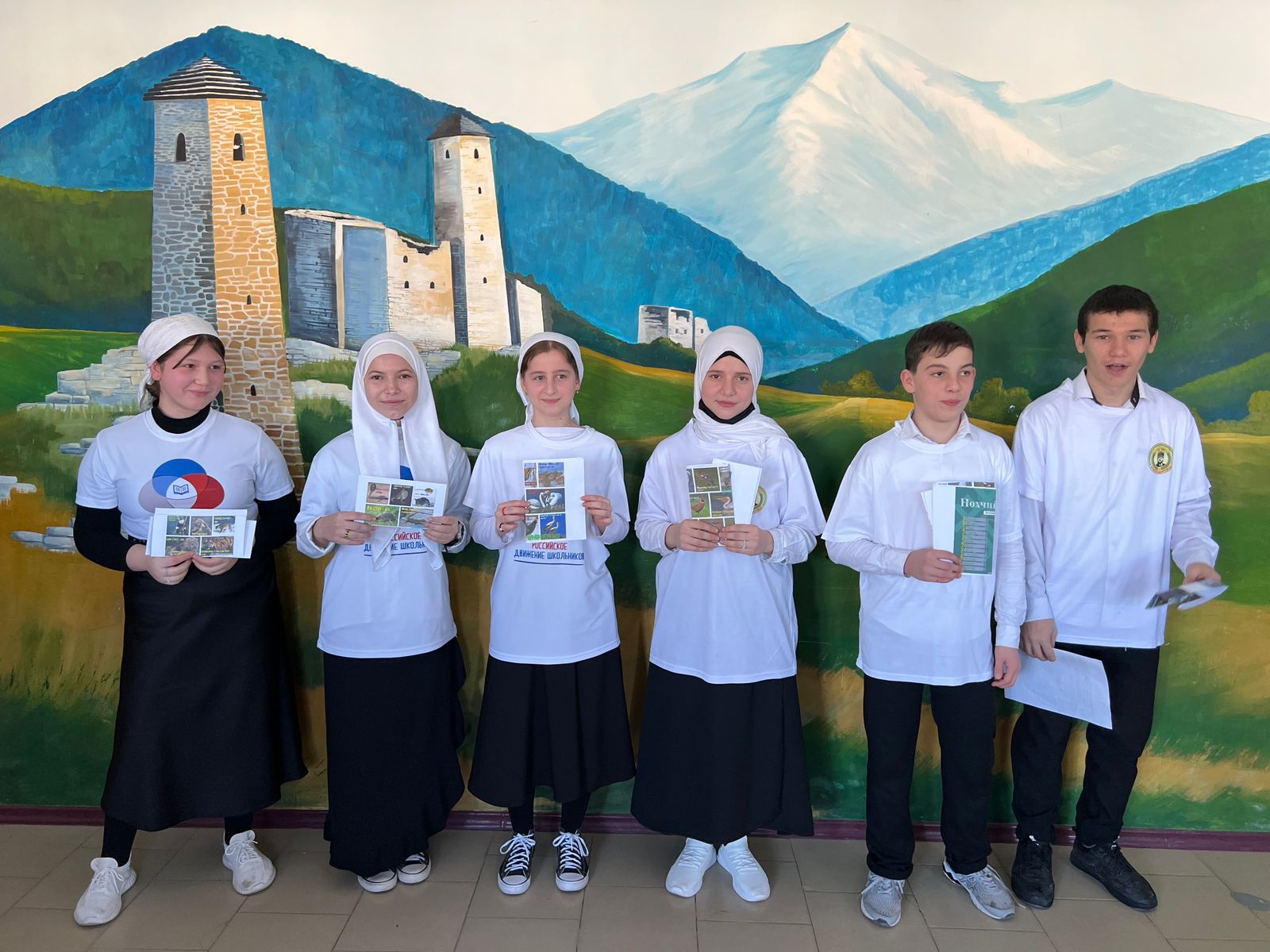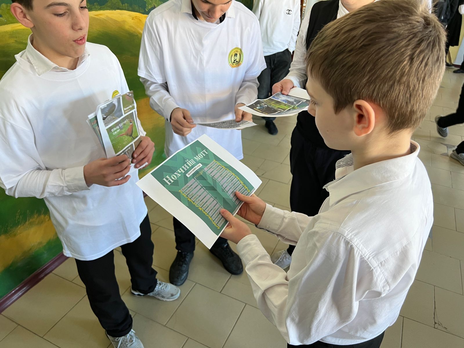 Активисты, которые состоят в школьных ячейках общественных организаций подготовили для учащихся школы буклеты, на которых была информация о чеченском языке, правила и различные слова.