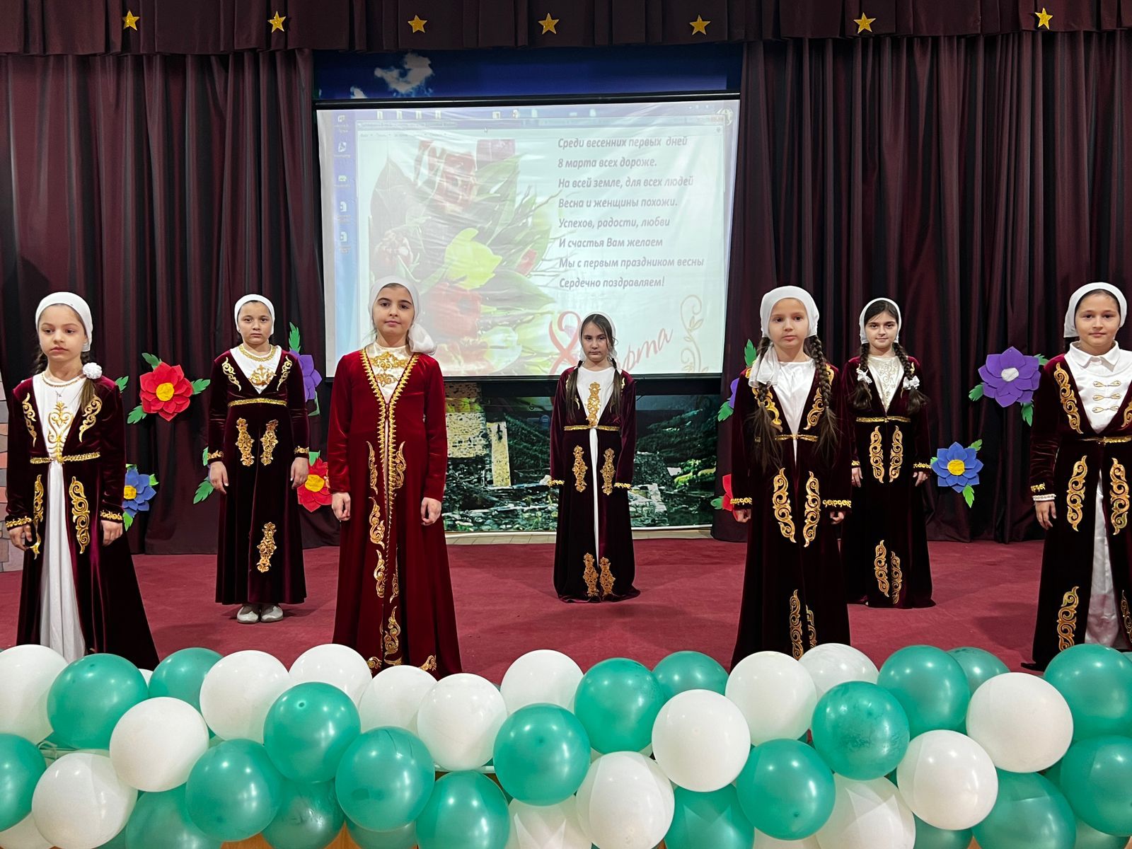 Вместе с весной в дома приходит один из самых ожидаемых, светлых и праздников – Международный женский день. В этот праздник принято поздравлять представительниц прекрасной половины, дарить им подарки и выражать свое восхищение. В МБОУ «СОШ №1 с.Бердыкель» ежегодно в преддверии праздника проходит торжественное мероприятие, где чествуют женщин. Так, учащиеся начальной школы подготовили яркую празднично-развлекательную программу, которая включала в себя песни, танцы, стихи, сценки и небольшую викторину.
