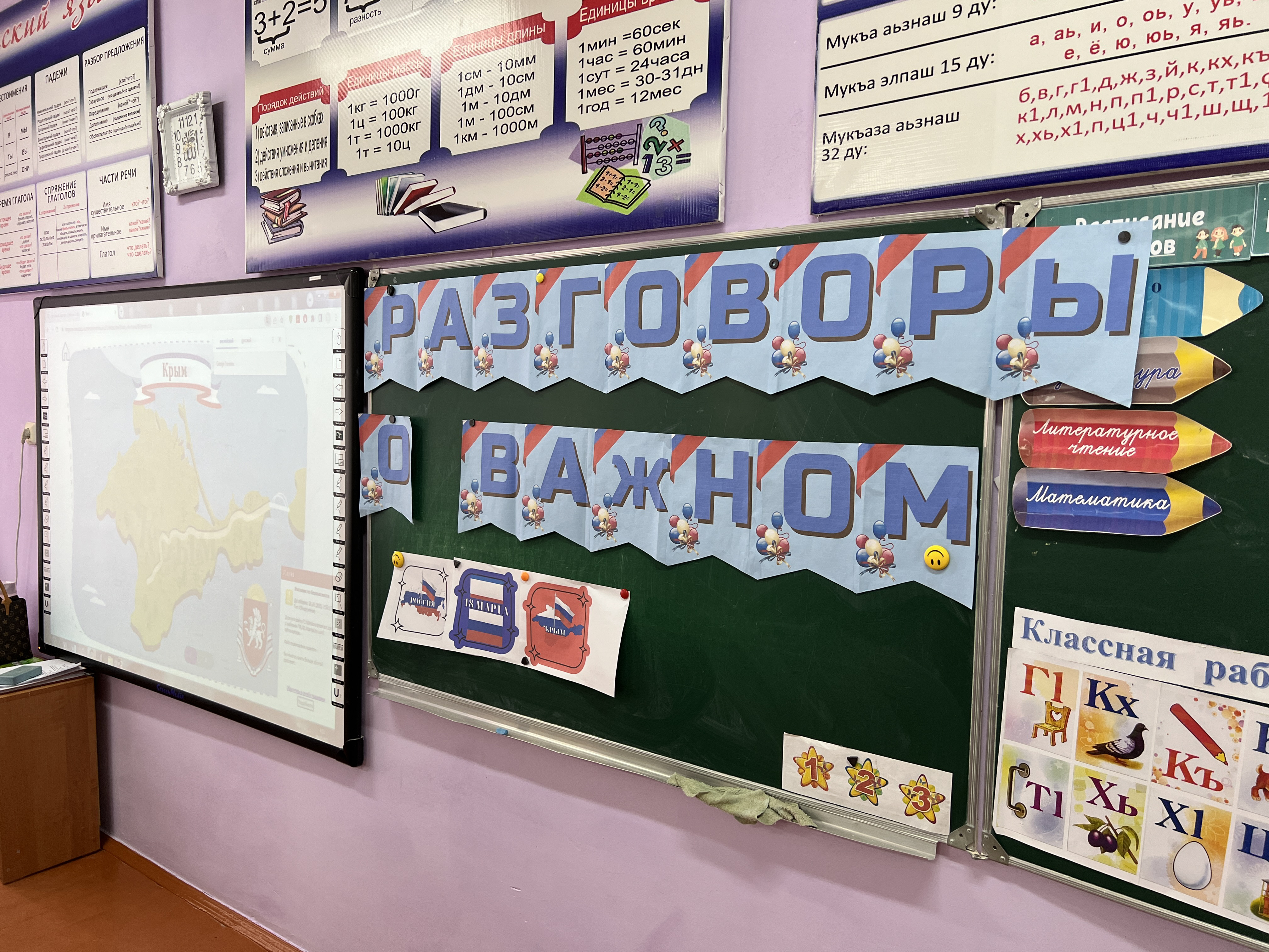 Далее прошли внеурочные занятия «Разговоры о важном». Тема урока: «День воссоединения Крыма с Россией».