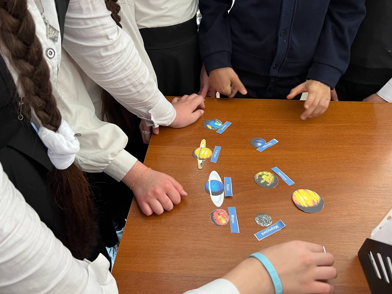 Для участников квеста были подготовленные специальные «станции», на которых они должны были решать определенные задания. Например, станция «Планетарий», здесь участникам нужно было назвать все планеты солнечной системы, совместив картинку с названием. На станции «Вселенная», ребята должны были расположить планеты в порядке удаления от Солнца. Третья станция – «Портретная» прятала в себе задание, в котором нужно было отгадать знаменитых российских космонавтов.