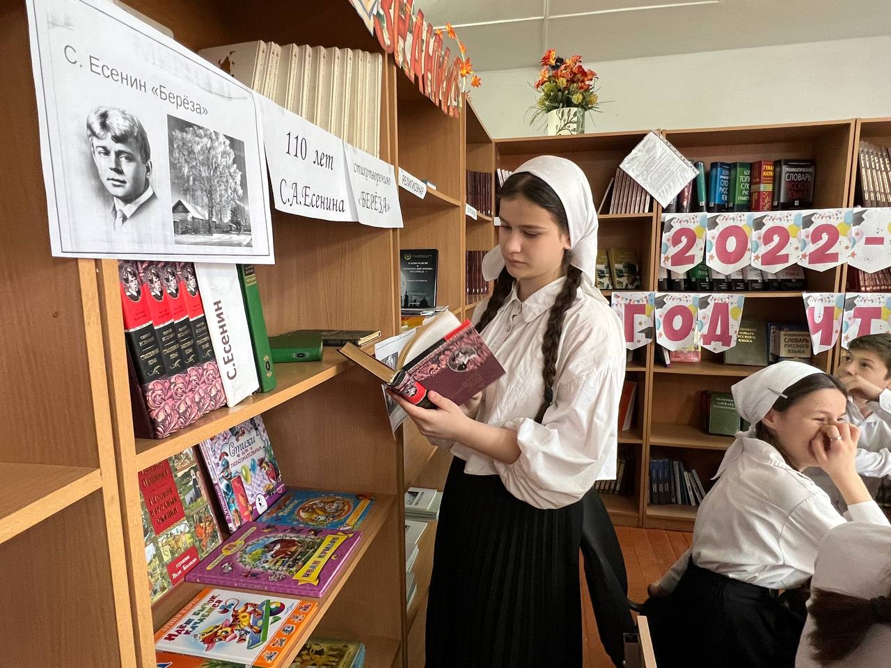 Начали мероприятие со стихотворения Есенина. Далее ребятам кратко рассказали о биографии поэта. Его творческий путь начался в селе Константиново Рязанской области. Родился Есенин в крестьянской семье и уже во время обучения в земском училище он написал более тридцати стихов.