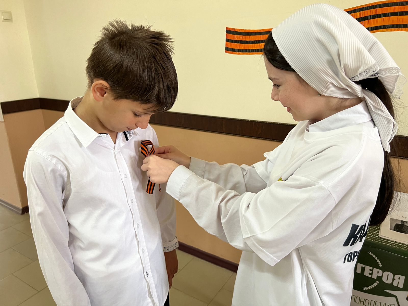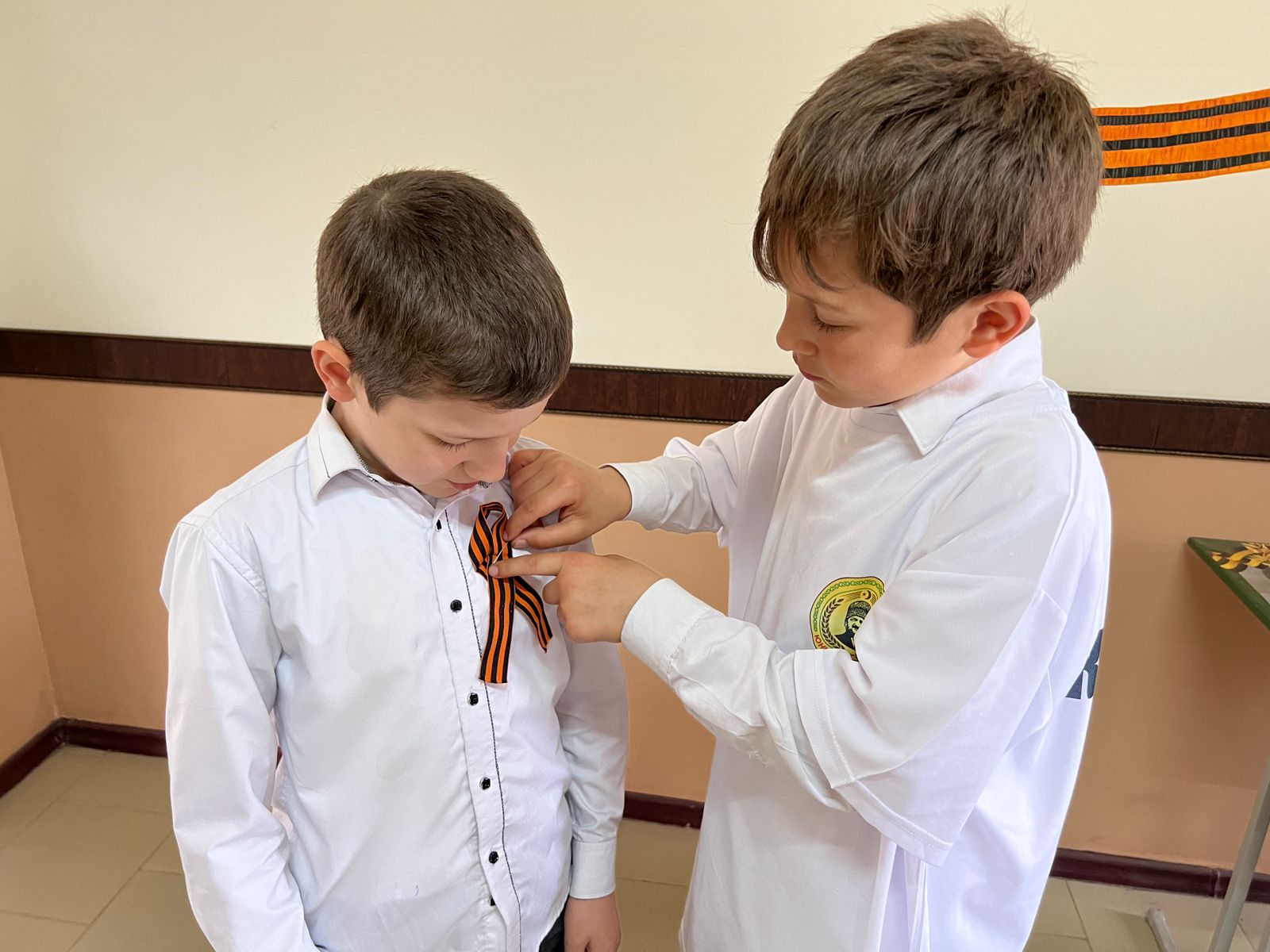 02.05.2023В рамках реализации федерального проекта «Успех каждого ребенка» национального проекта «Образование» в МБОУ «СОШ №1 с.Бердыкель» прошла акция, приуроченная ко Дню Победы. В ней приняли участие ребята из пятых и шестых классов. Участники акции раздали обучающимся Георгиевские ленты.