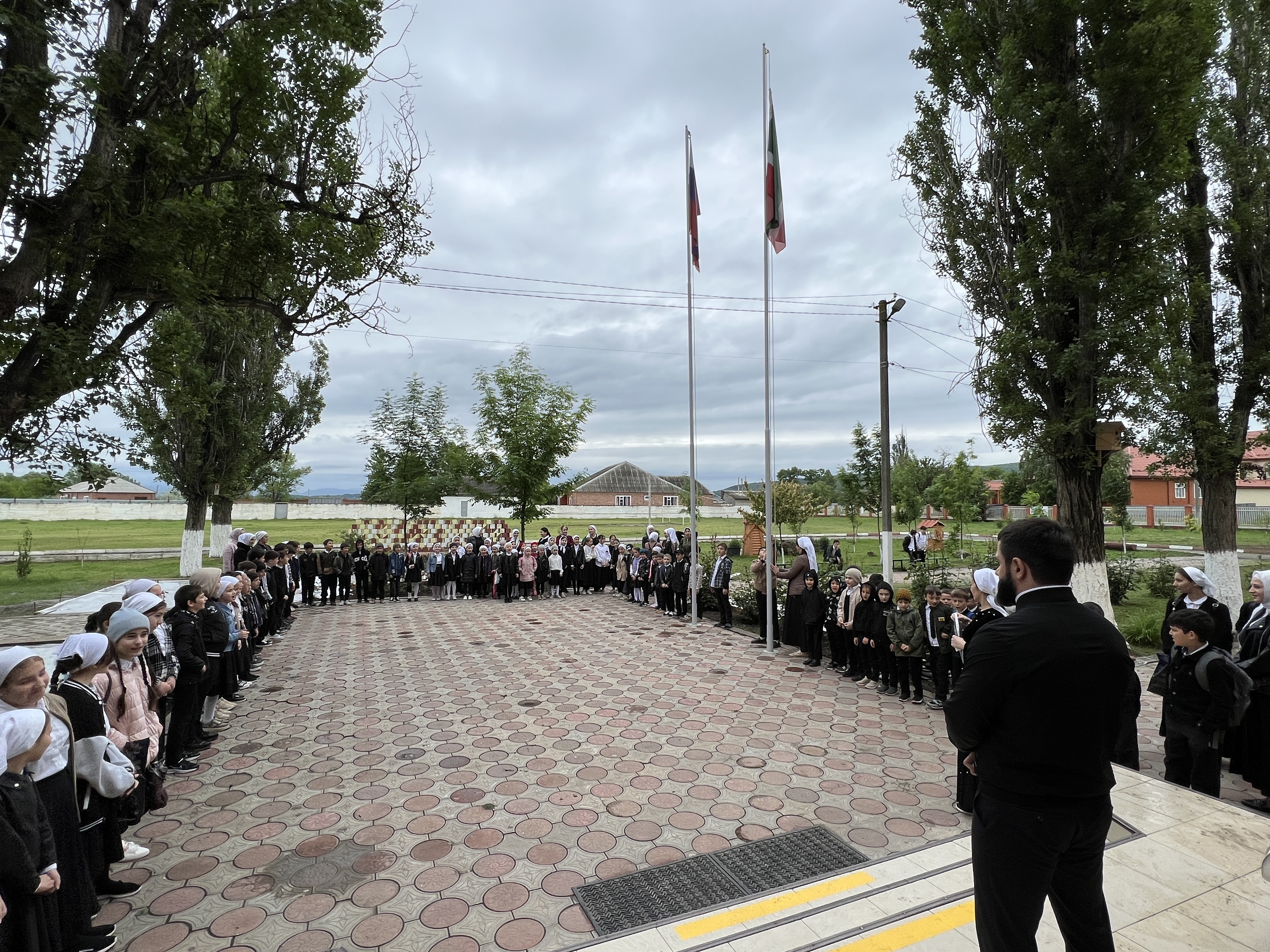 Новая учебная неделя в МБОУ «СОШ №1 с.Бердыкель» началась с традиционной церемонии поднятия государственных флагов Российской Федерации и Чеченской Республики. Все заслушали еженедельный отчет дежурного класса, после чего ребята исполнили гимны страны и республики.
