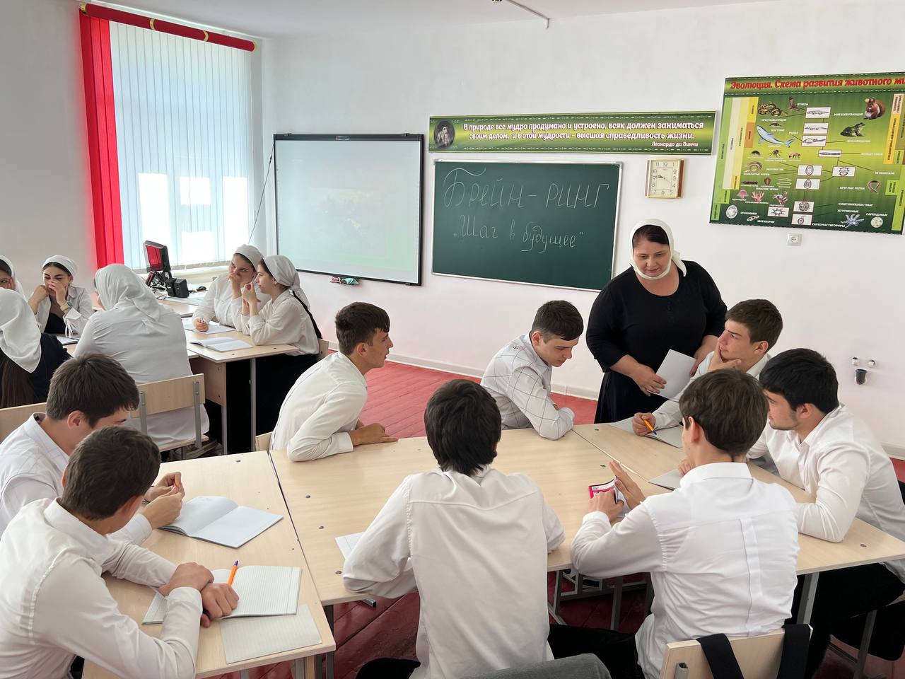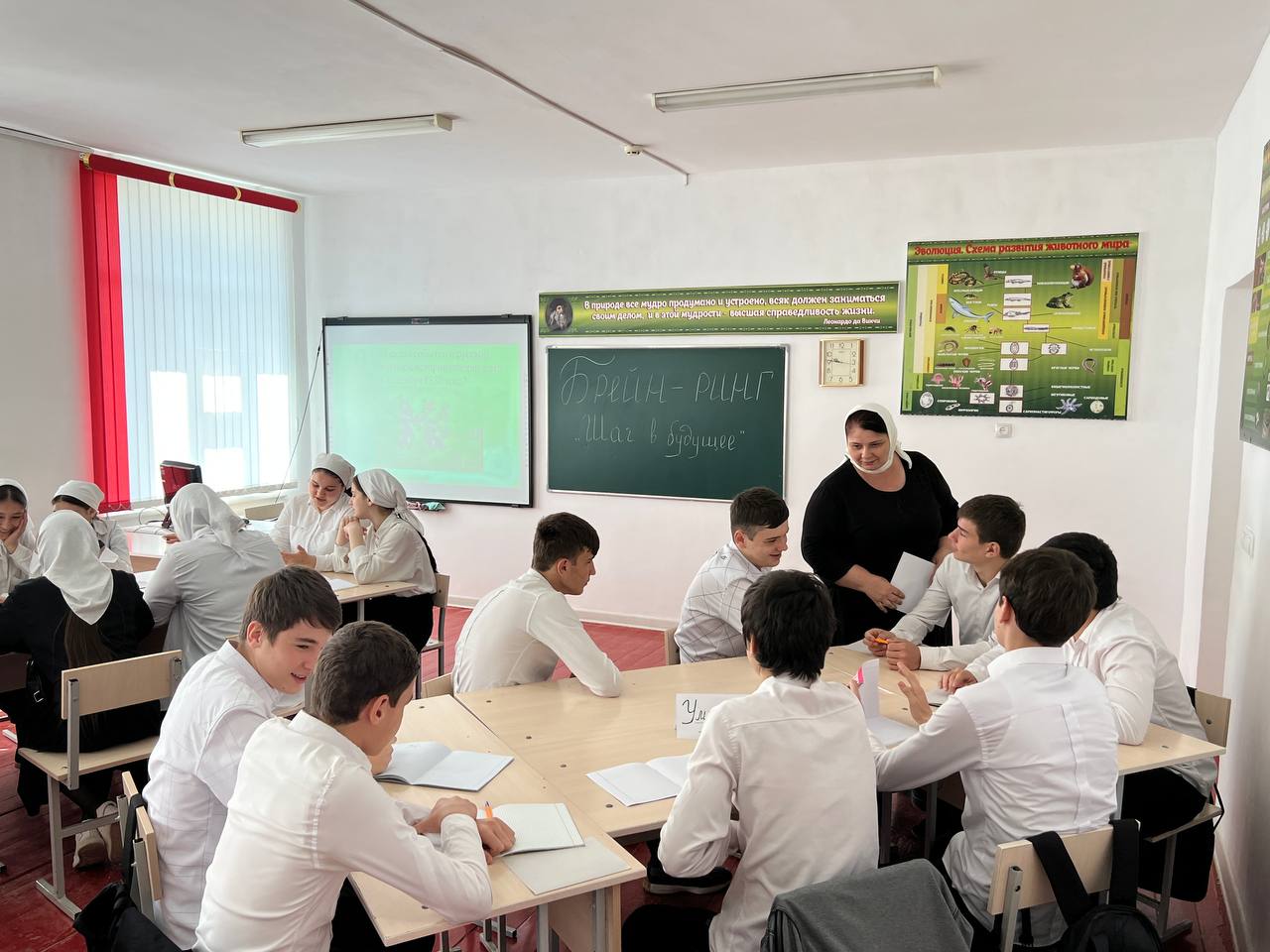 17.05.2023В рамках реализации федерального проекта «Успех каждого ребенка» национального проекта «Образование» в МБОУ «СОШ №1 с.Бердыкель» прошел «Брейн-ринг «Шаг в будущее». В нем приняли участие ребята из выпускных девятых классов. Цель мероприятия: выявить знания обучающихся о разных областях науки, расширение кругозора детей, развитие познавательных способностей, воспитание интеллектуально развитой личности.