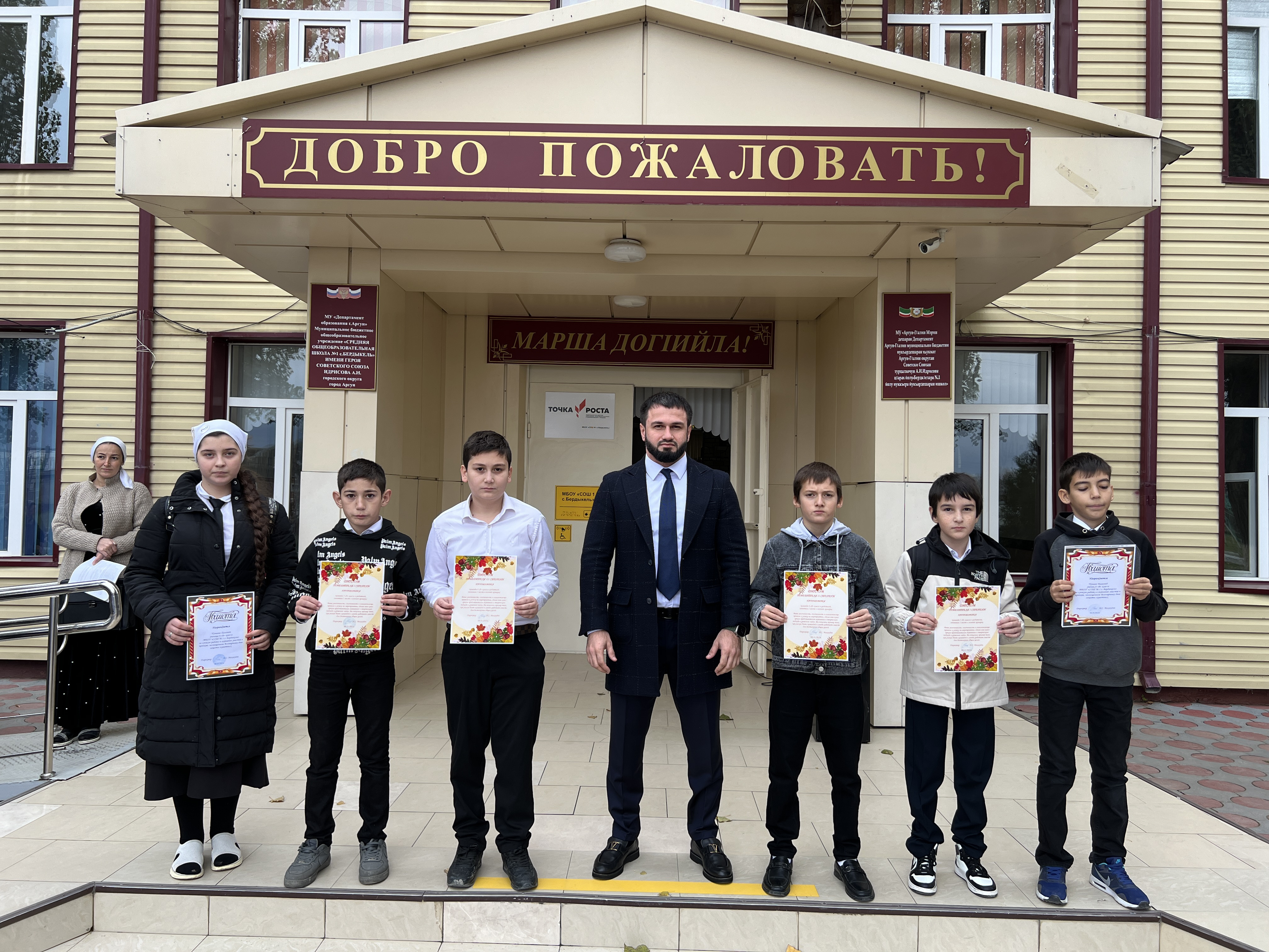 В МБОУ «СОШ №1 с.Бердыкель» прошла традиционная церемония поднятия государственных флагов Российской Федерации и Чеченской Республики. Также состоялось награждение победителей осенней ярмарки, которая прошла в школе 9 ноября.