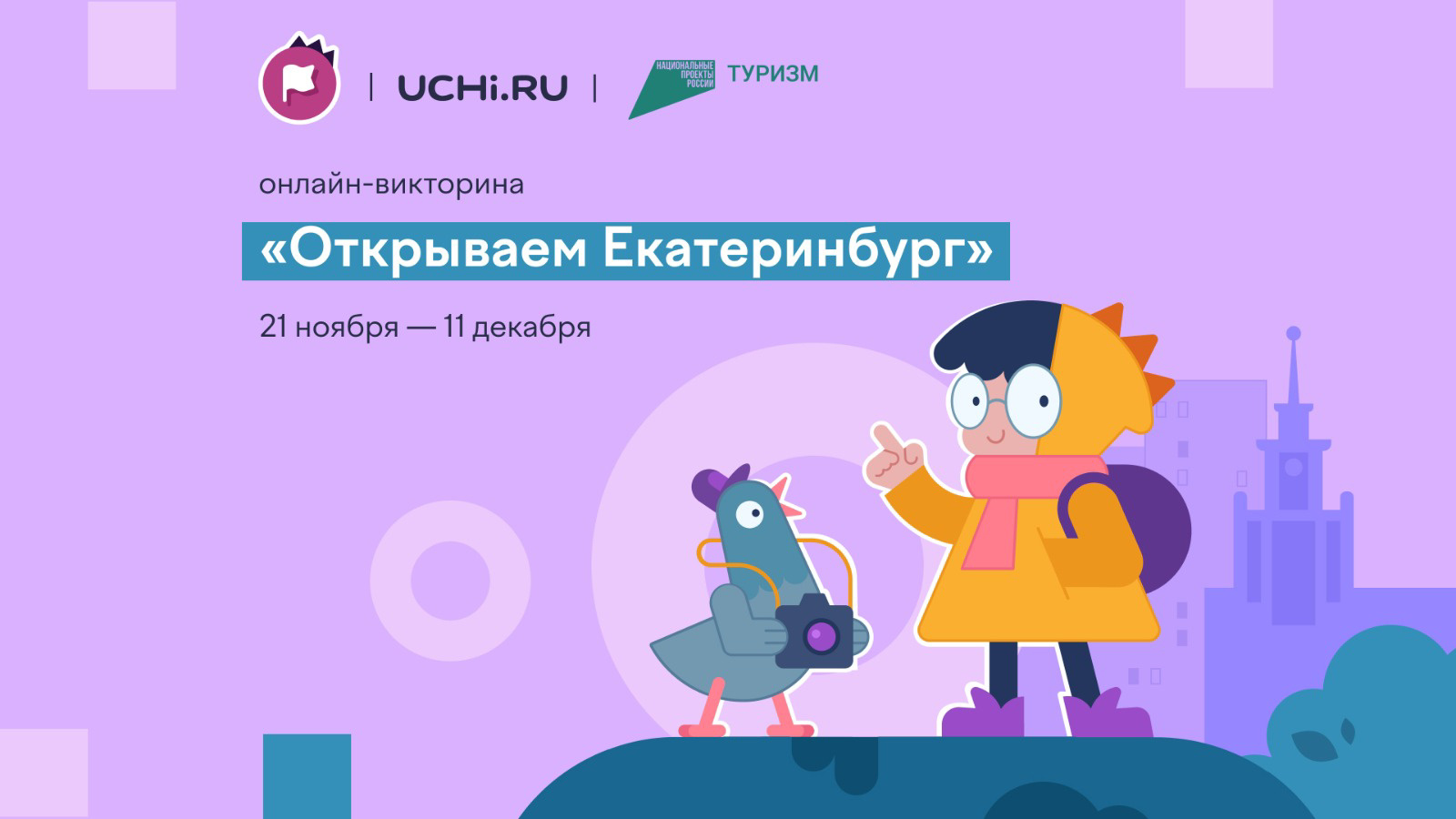 «Мы поздравляем Екатеринбург с 300-летним юбилеем и рады приобщить школьников страны к богатой культуре региона. Свердловская область отличается разнообразием природных зон и важными промышленными предприятиями. В викторине «Открываем Екатеринбург» ребятам предстоит ответить на вопросы, которые включают в себя интересные факты из разных сфер: от архитектуры города до природных особенностей региона. Надеемся, что как можно больше школьников познакомятся с историей этой удивительной области и захотят в ней побывать», — отмечает заместитель генерального директора образовательной платформы Учи.ру Сергей Веременко.