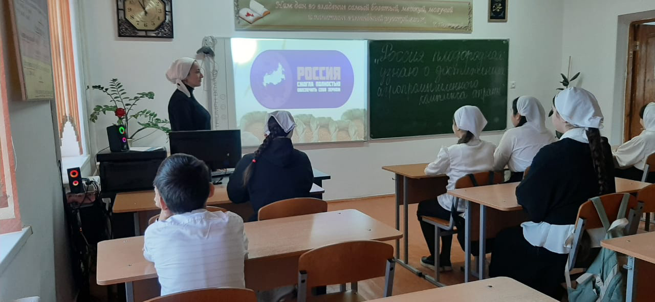 В МБОУ «СОШ №1 с.Бердыкель» прошло занятие профориентационного курса «Россия – мои горизонты». Тема урока: «Россия плодородная: узнаю достижения агропромышленного комплекса страны».