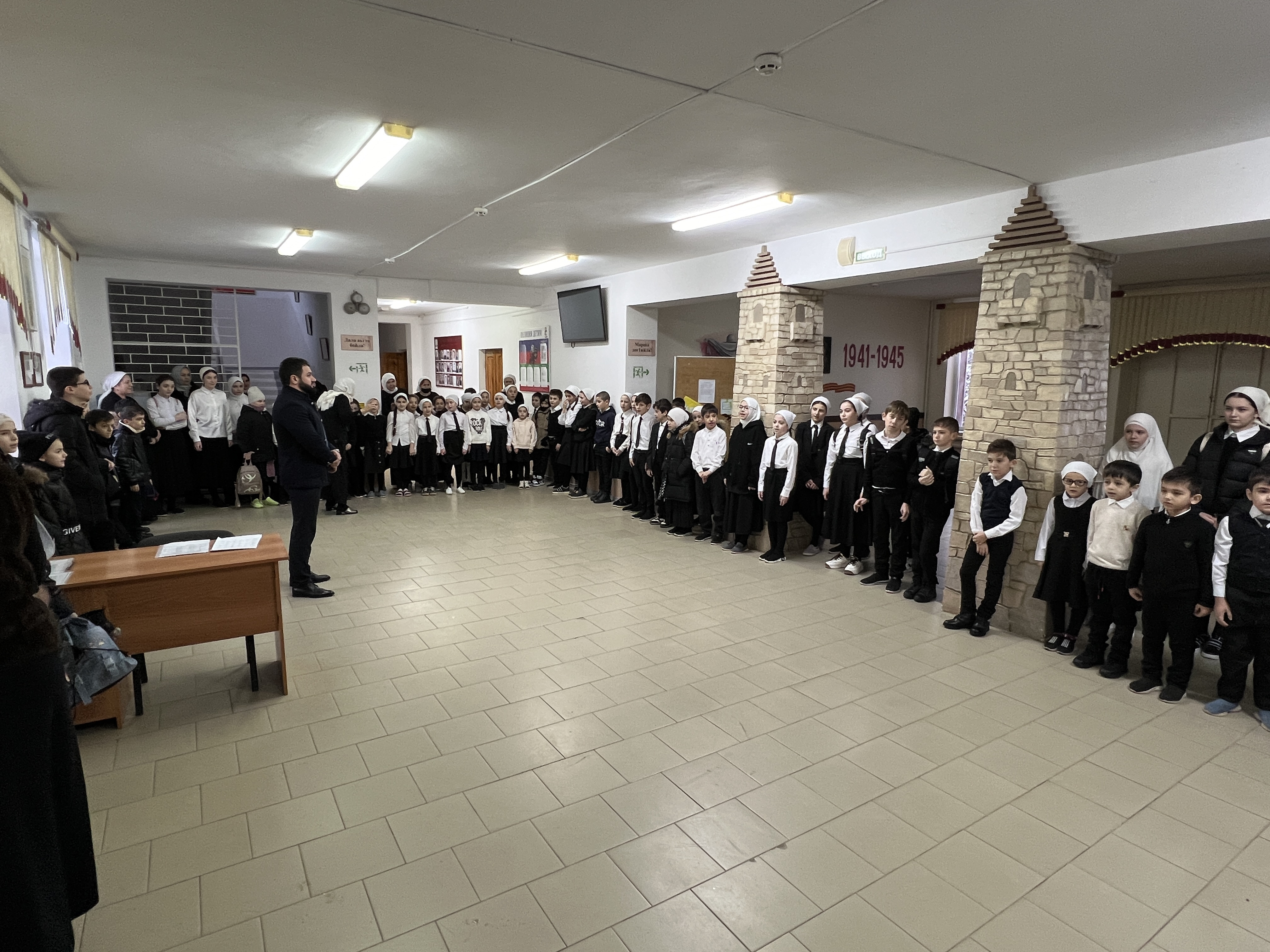 В МБОУ «СОШ №1 с.Бердыкель» прошла традиционная церемония поднятия государственных флагов Российской Федерации и Чеченской Республики. Прошло и внеурочное занятие «Разговоры о важном». Тема урока: «Непокоренные. 80 лет со дня полного освобождения Ленинграда от фашистской блокады».