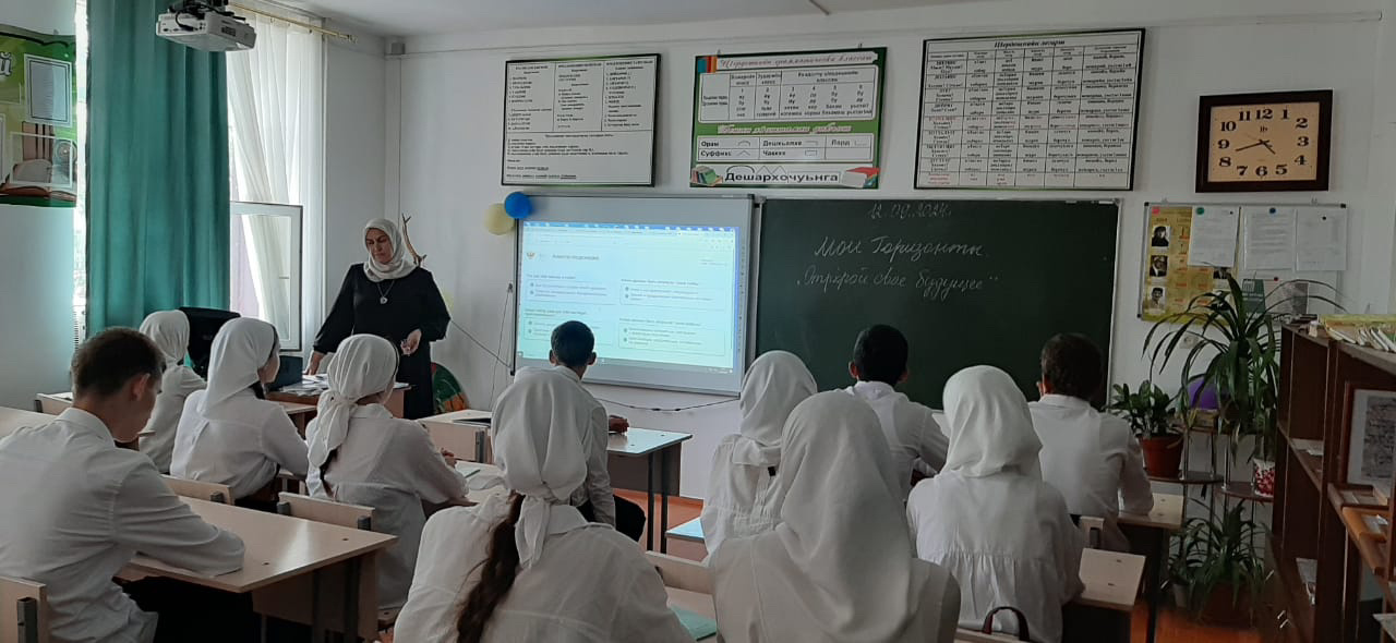 В МБОУ «СОШ №1 с.Бердыкель» прошло первое в новом учебном году профориентационное занятие «Россия - мои горизонты». Тема: «Открой свое будущее».