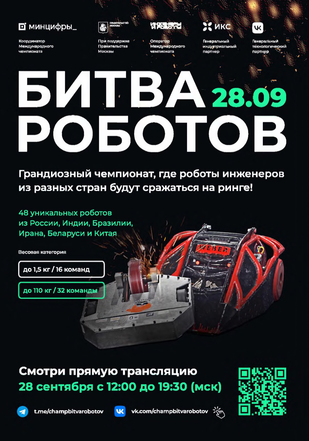 Впервые в Чеченской Республике. Международный чемпионат потбитве роботов. Не пропусти.