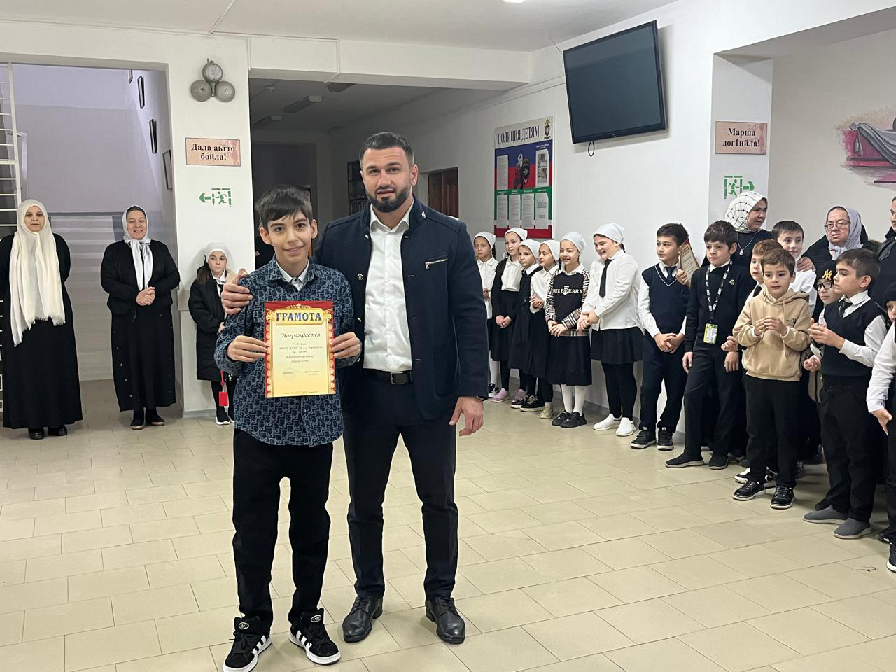 В МБОУ «СОШ №1 с.Бердыкель» прошла традиционная церемония поднятия государственных флагов Российской Федерации и Чеченской Республики. В рамках церемонии наградили победителей осенней ярмарки «Золотая осень» дипломами I, II и III степени.