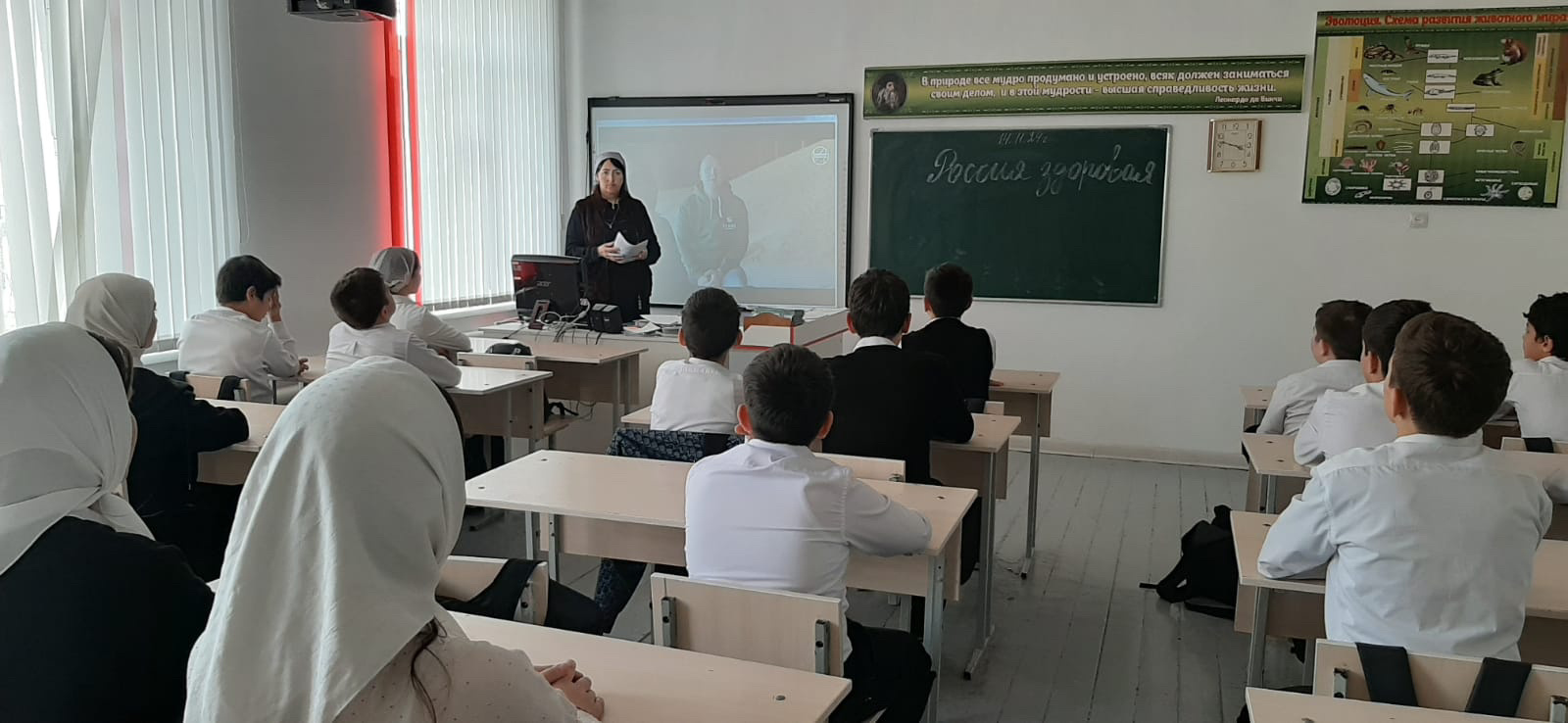 В МБОУ «СОШ №1 с.Бердыкель» прошло профориентационное занятие «Россия - мои горизонты». Тема: «Россия здоровая».