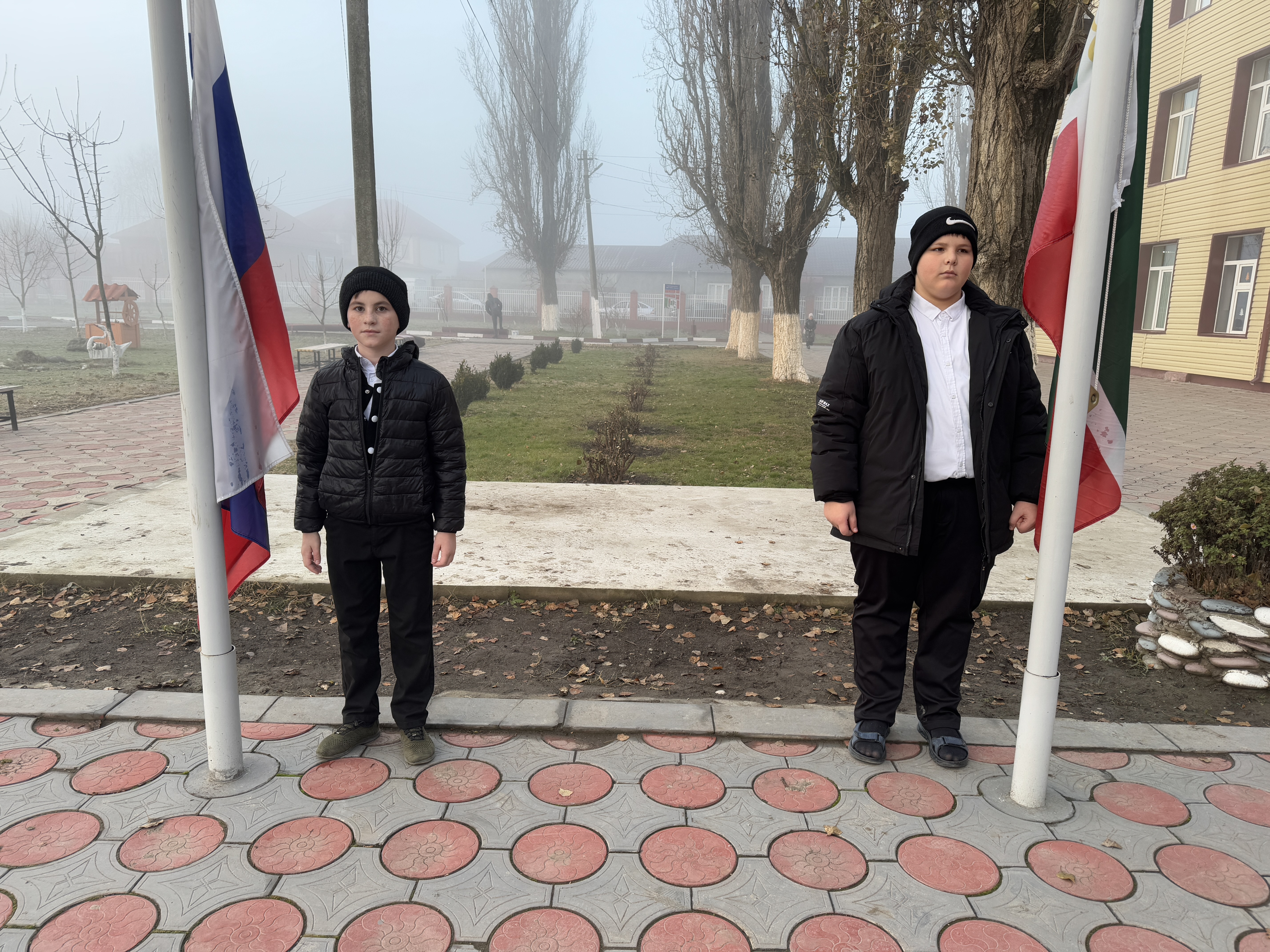 Понедельник в МБОУ «СОШ №1 с.Бердыкель» начался по традиции с церемонии поднятия государственных флагов Российской Федерации и Чеченской Республики.