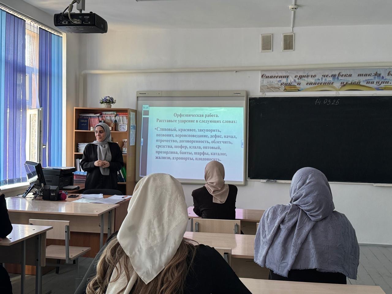 14.03.2025На базе МБОУ «СОШ №1 с.Бердыкель» региональным методистом Магомедовой Алият Саит-Эмиевной проведен семинар на тему «Проектирование урока в рамках средневзвешенной системы планируемых результатов по учебному предмету «Русский язык»». Работа семинара была выстроена на примере урока русского языка по теме «Лексика и фразеология» (10 класс), где в роли обучающихся выступили учителя.