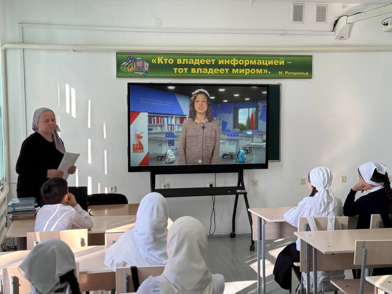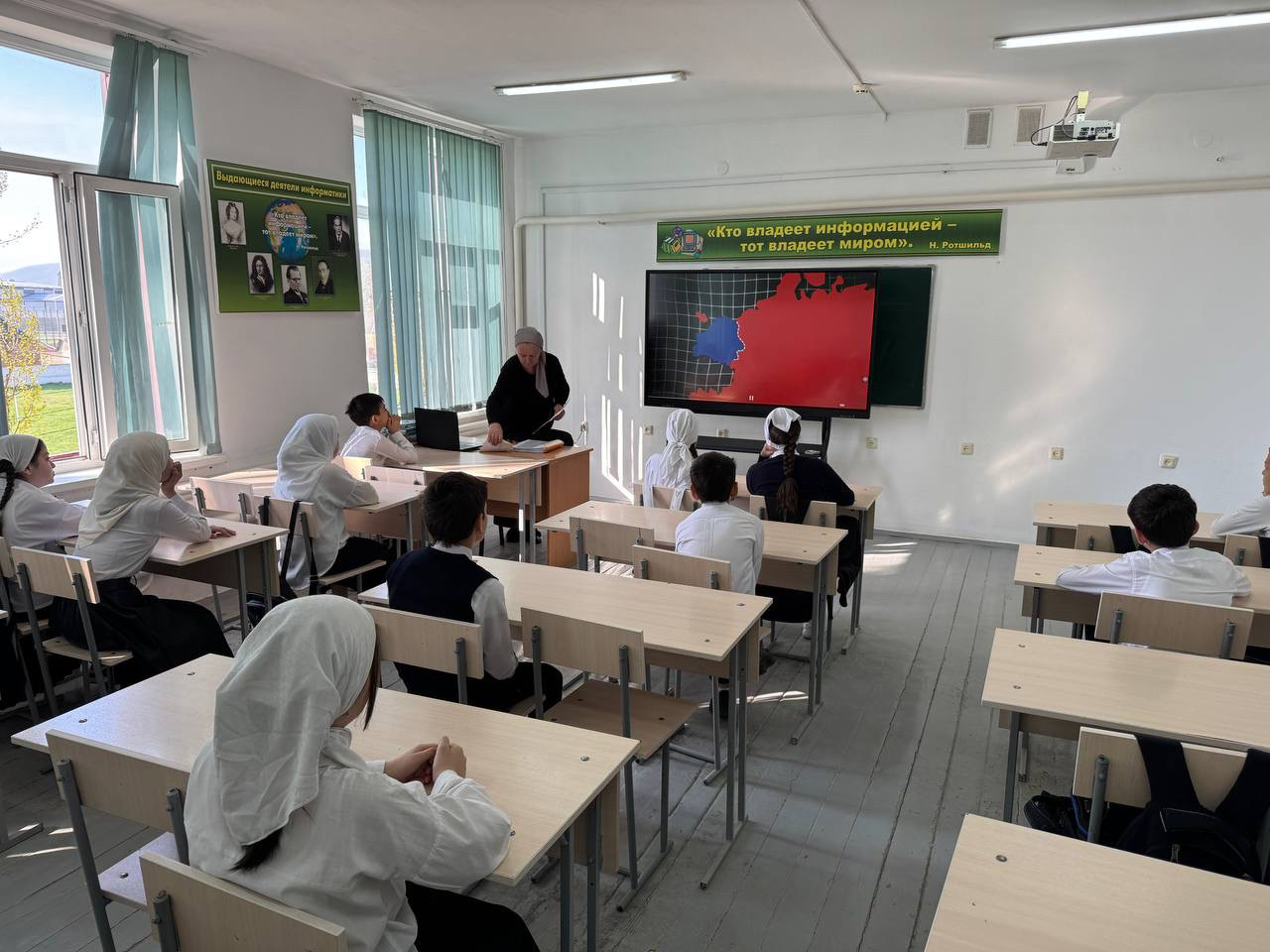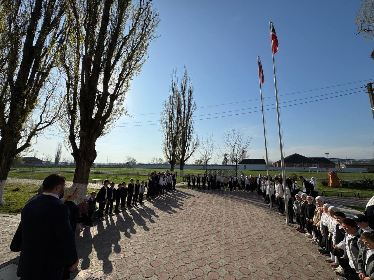 Понедельник по традиции в МБОУ «СОШ №1 с. Бердыкель» начался с церемонии поднятия флагов Российской Федерации и Чеченской Республики. Прошло и внеурочное занятие «Разговоры о важном» на тему «День единения народов России и Беларуси. Союзное государство».