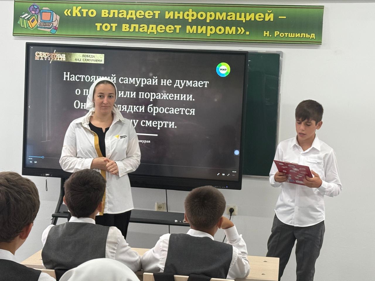 Советник директора Кудхаджиева А. В. провела для старшеклассников кинолекторий «Кадры Победы» - «Япония против всего мира. Начало Второй Мировой Войны.»