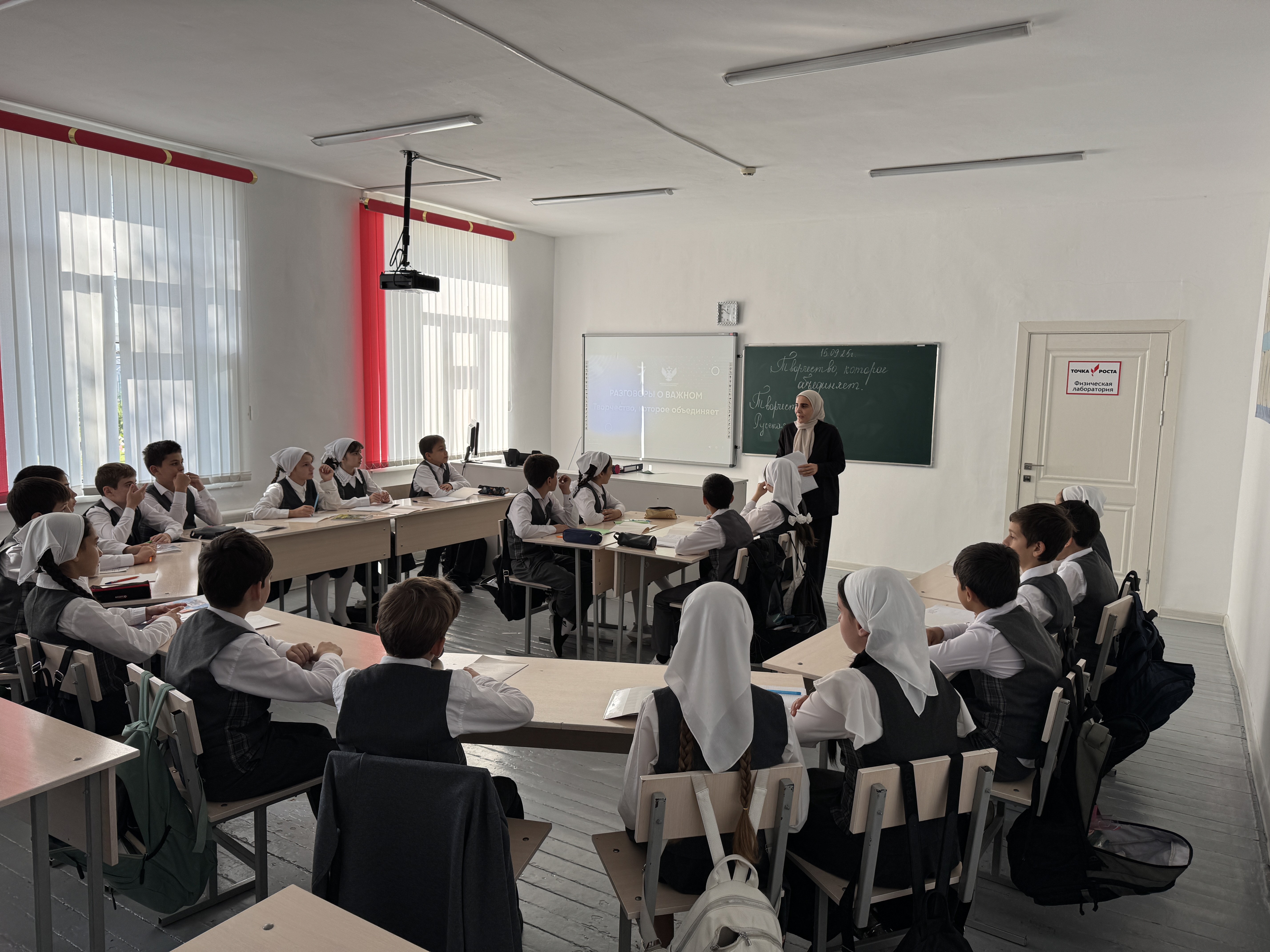 Понедельник по традиции в МБОУ «СОШ №1 с. Бердыкель» начался с церемонии поднятия флагов Российской Федерации и Чеченской Республики. Прошло и внеурочное занятие «Разговоры о важном» на тему «Творчество, которое объединяет».