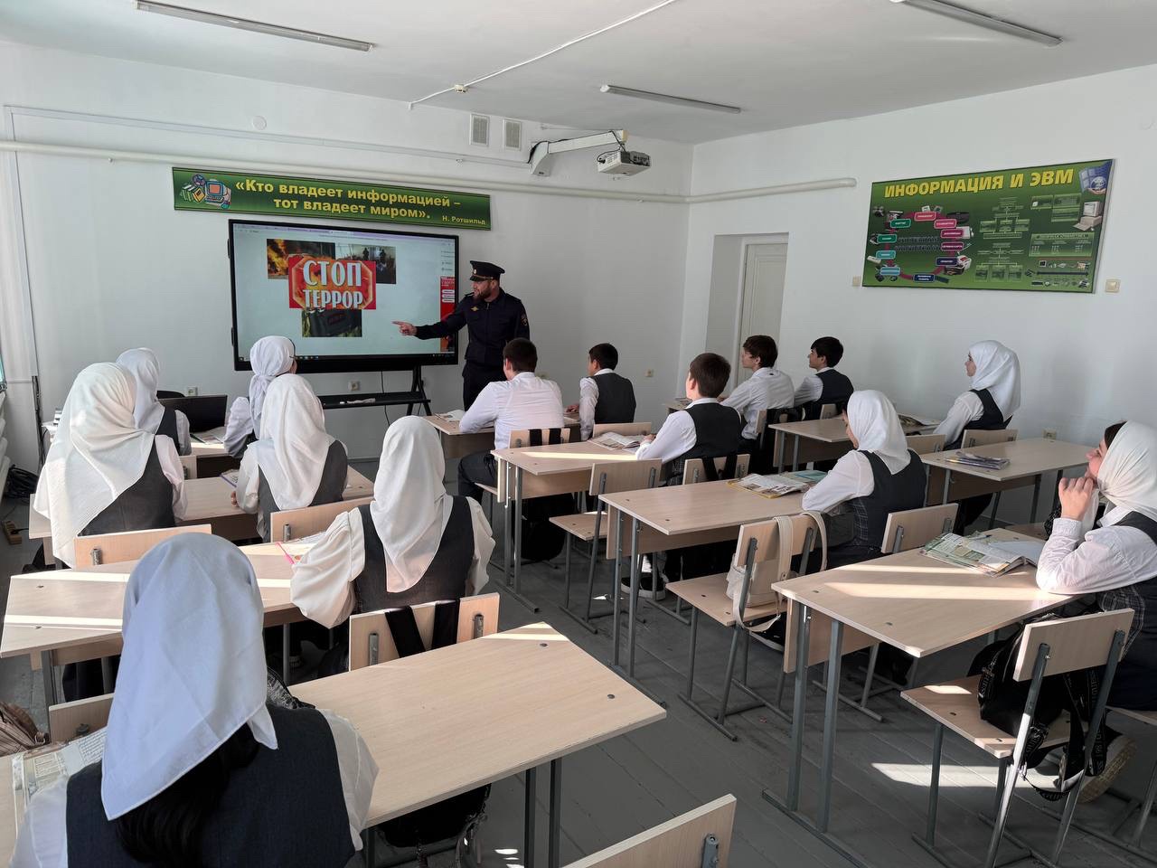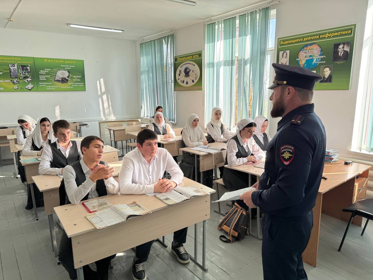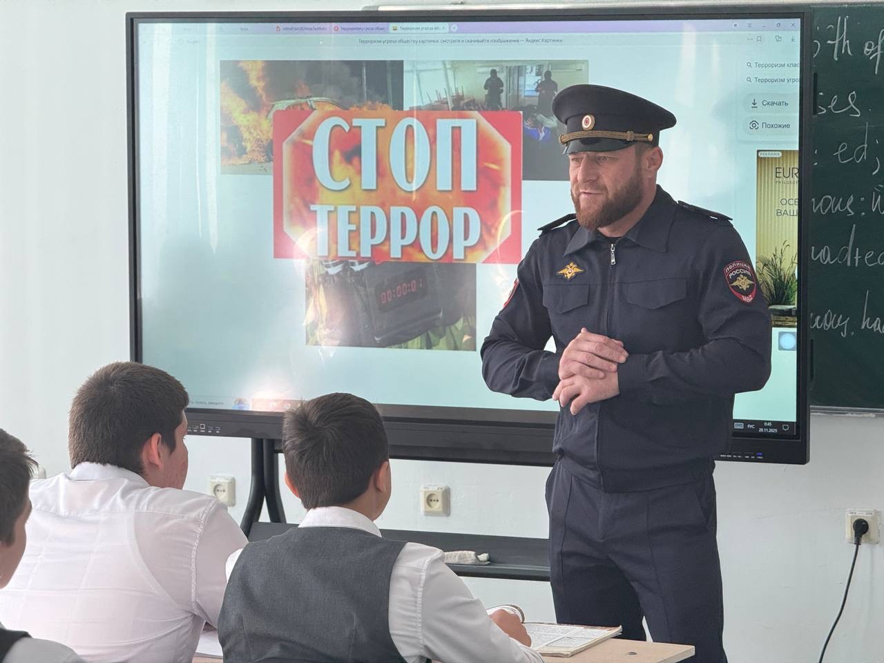 В МБОУ «СОШ №1 с. Бердыкель» старший инспектор ПДН Заурбек Бадрудинович Мудаев провёл профилактическую беседу с обучающимися. В ходе встречи он напомнил о недопустимости любых проявлений экстремизма и терроризма, важности соблюдения закона и личной безопасности.