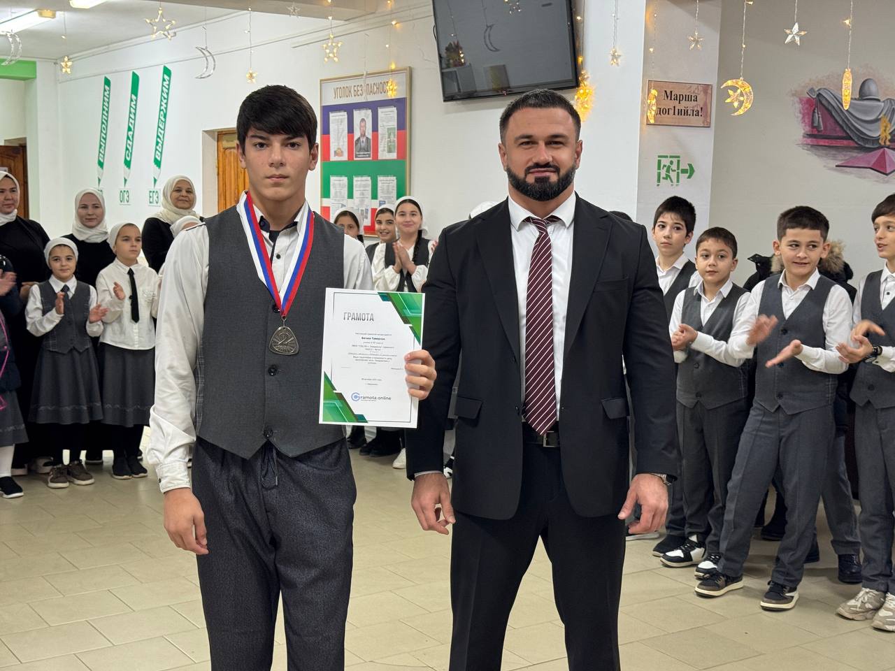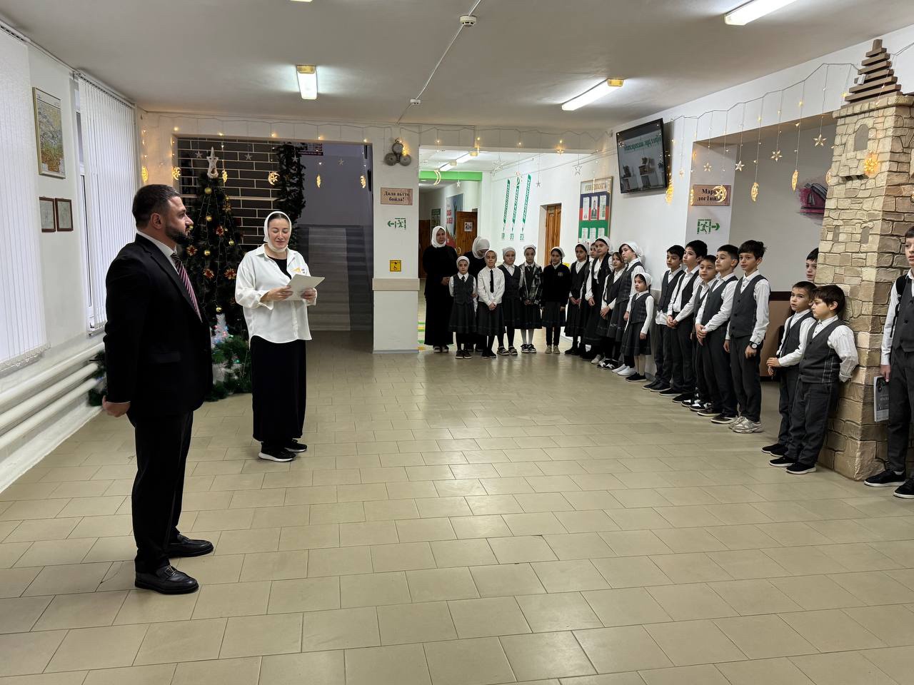 Учебная неделя в МБОУ «СОШ №1 с. Бердыкель» началась с церемонии поднятия флагов Российской Федерации и Чеченской Республики. Также наградили победителей в различных конкурсах и соревнованиях муниципального и регионального уровней. Прошло и внеурочное занятие «Разговоры о важном» на тему «Россия - страна победителей. Ко Дню Героев Отечества».