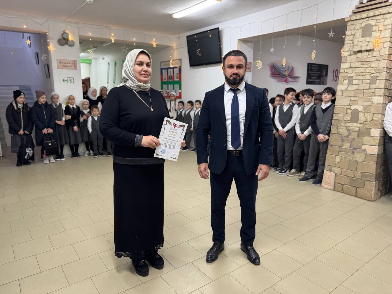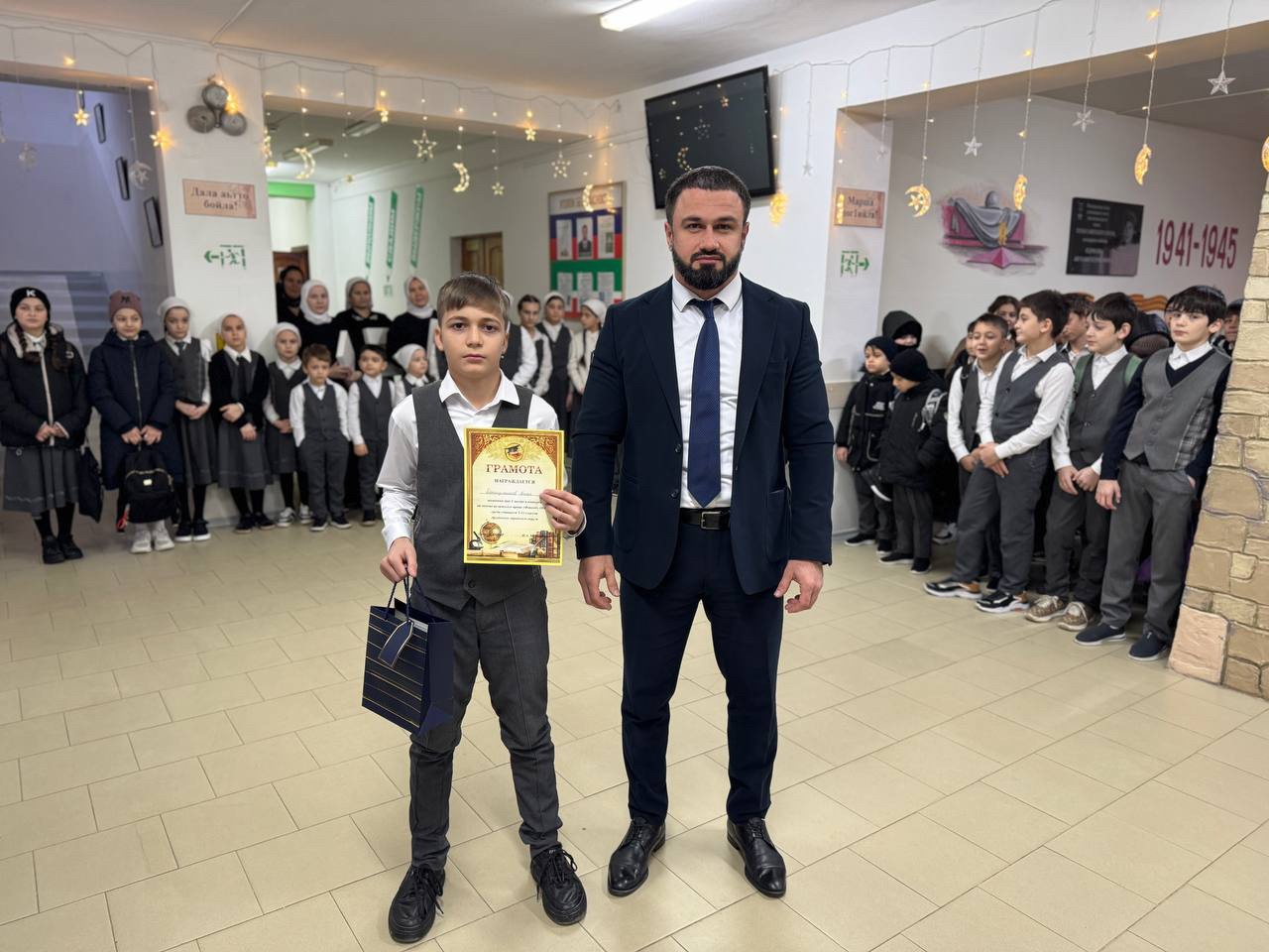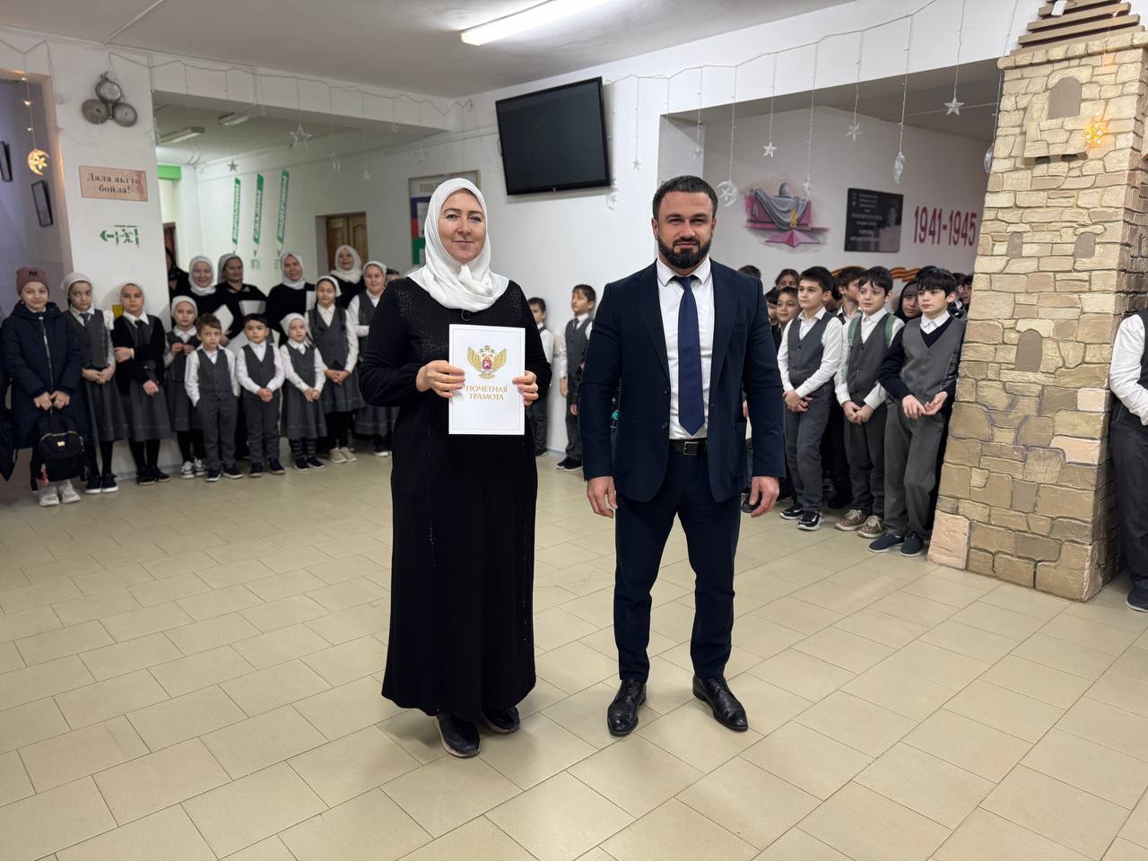 Чеченской Республики в 2025 и почетной грамотой министерства просвещения Российской федерации заместителя директора по ВР Кудхаджиеву Лидию Геланиевну за многолетний добросовестный труд и значительные заслуги в сфере образования. Грамоты вручили и победителям в различных конкурсах. Прошло и внеурочное занятие «Разговоры о важном» на тему «Как создают мультфильмы?».
