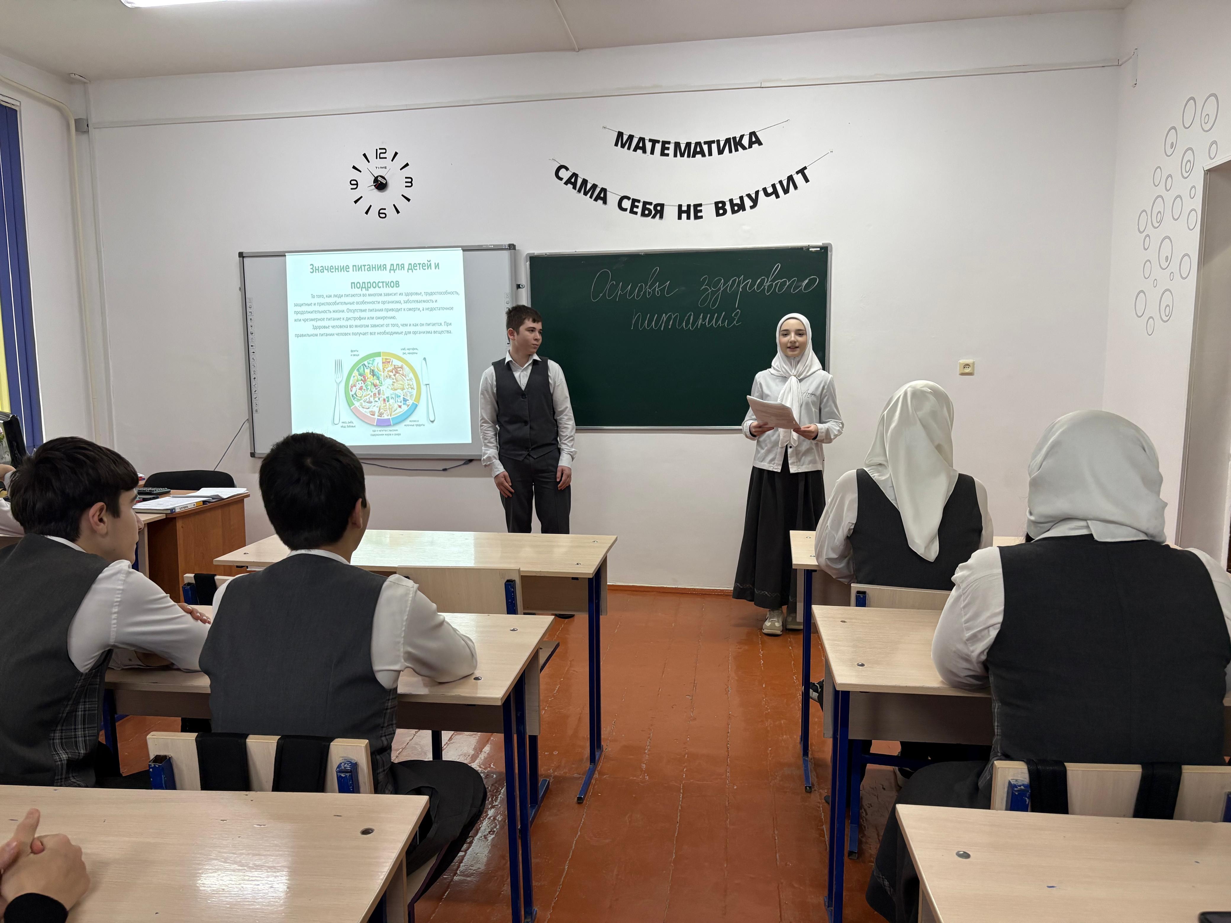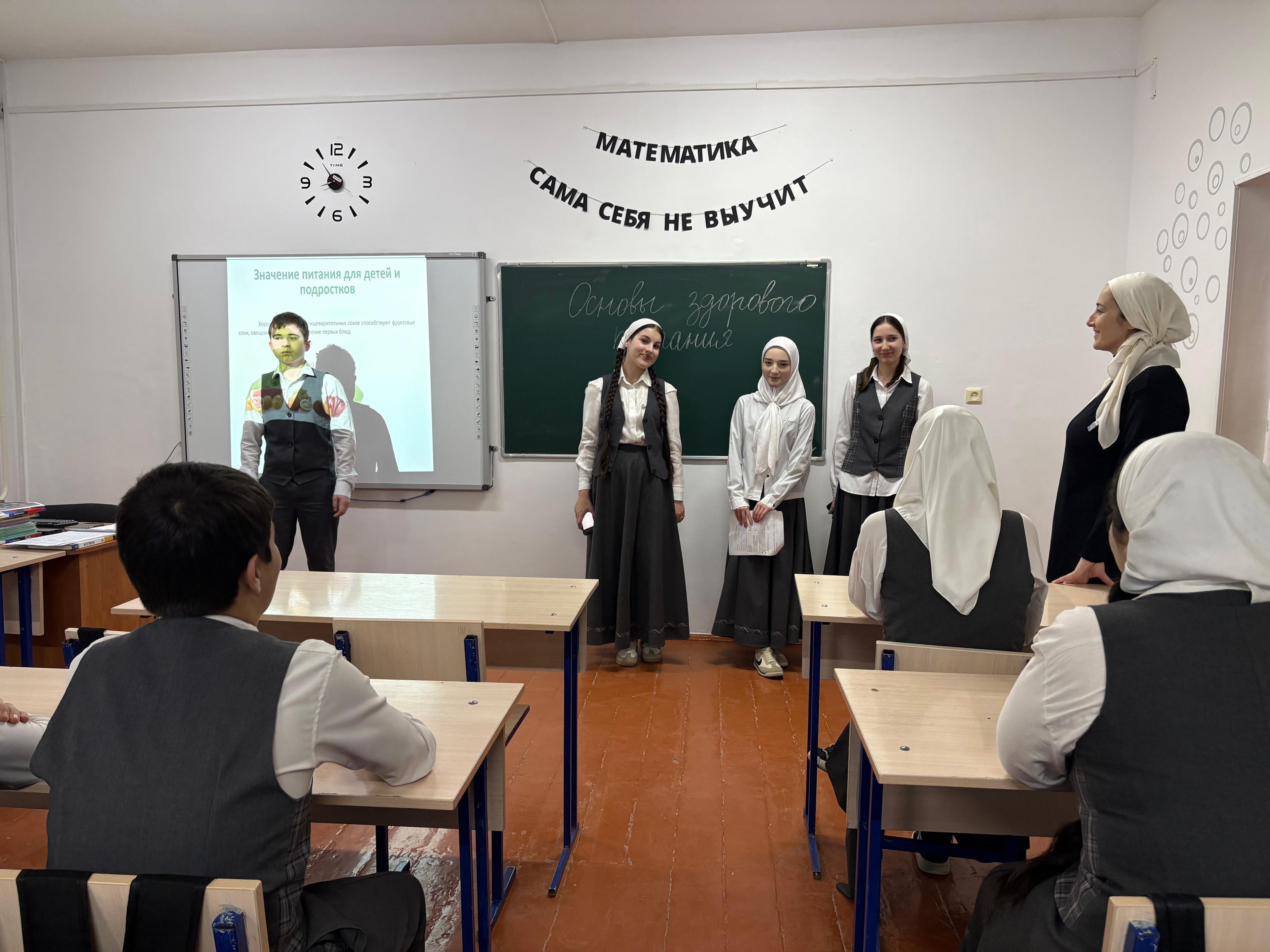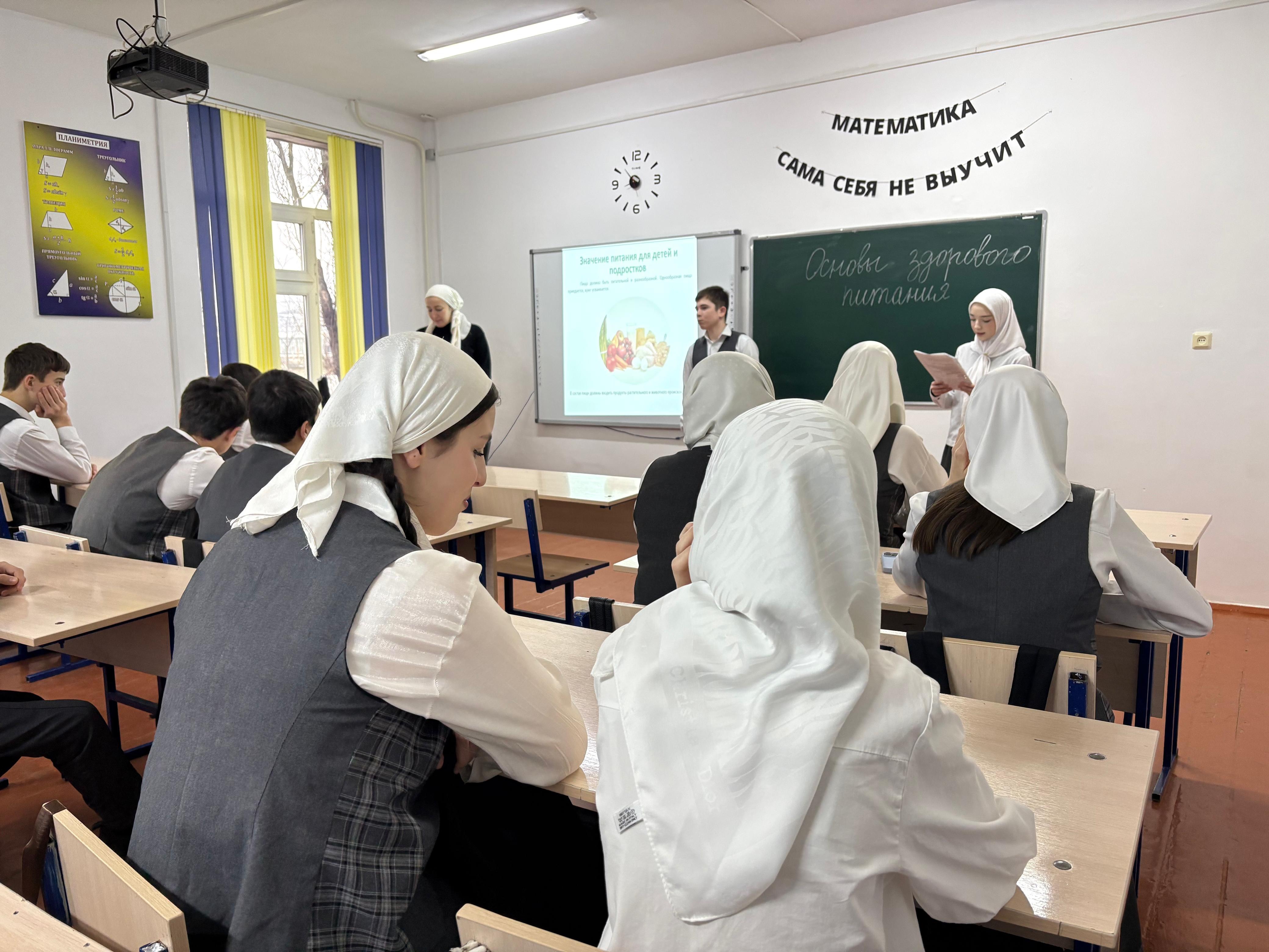 В МБОУ «СОШ №1 с. Бердыкель» прошёл классный час по основам здорового питания, в ходе которого обучающиеся узнали о принципах сбалансированного рациона, пользе полезных продуктов и значении правильного питания для сохранения здоровья, энергии и работоспособности.