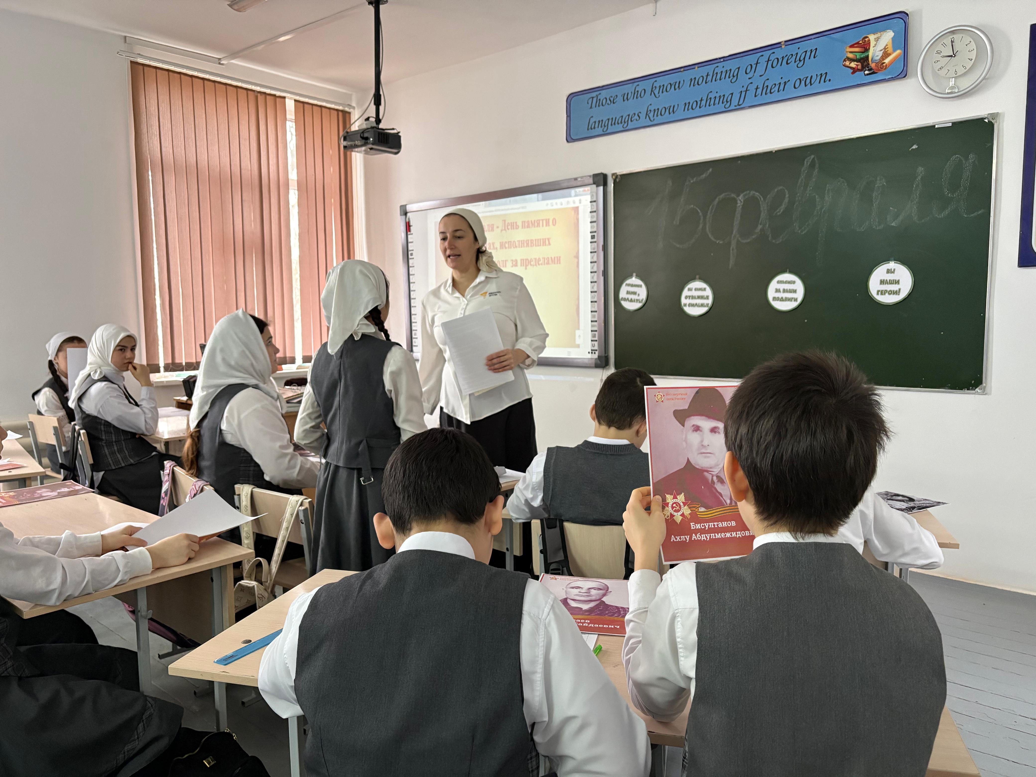В МБОУ «СОШ №1 с. Бердыкель» прошли мероприятия, посвящённые Дню памяти о россиянах, исполнявших служебный долг за пределами Отечества, в ходе которых обучающиеся вспомнили подвиг военнослужащих, проявивших мужество и верность присяге, и почтили память тех, кто отдал жизнь, выполняя свой долг, что способствовало воспитанию патриотизма и уважения к истории страны.