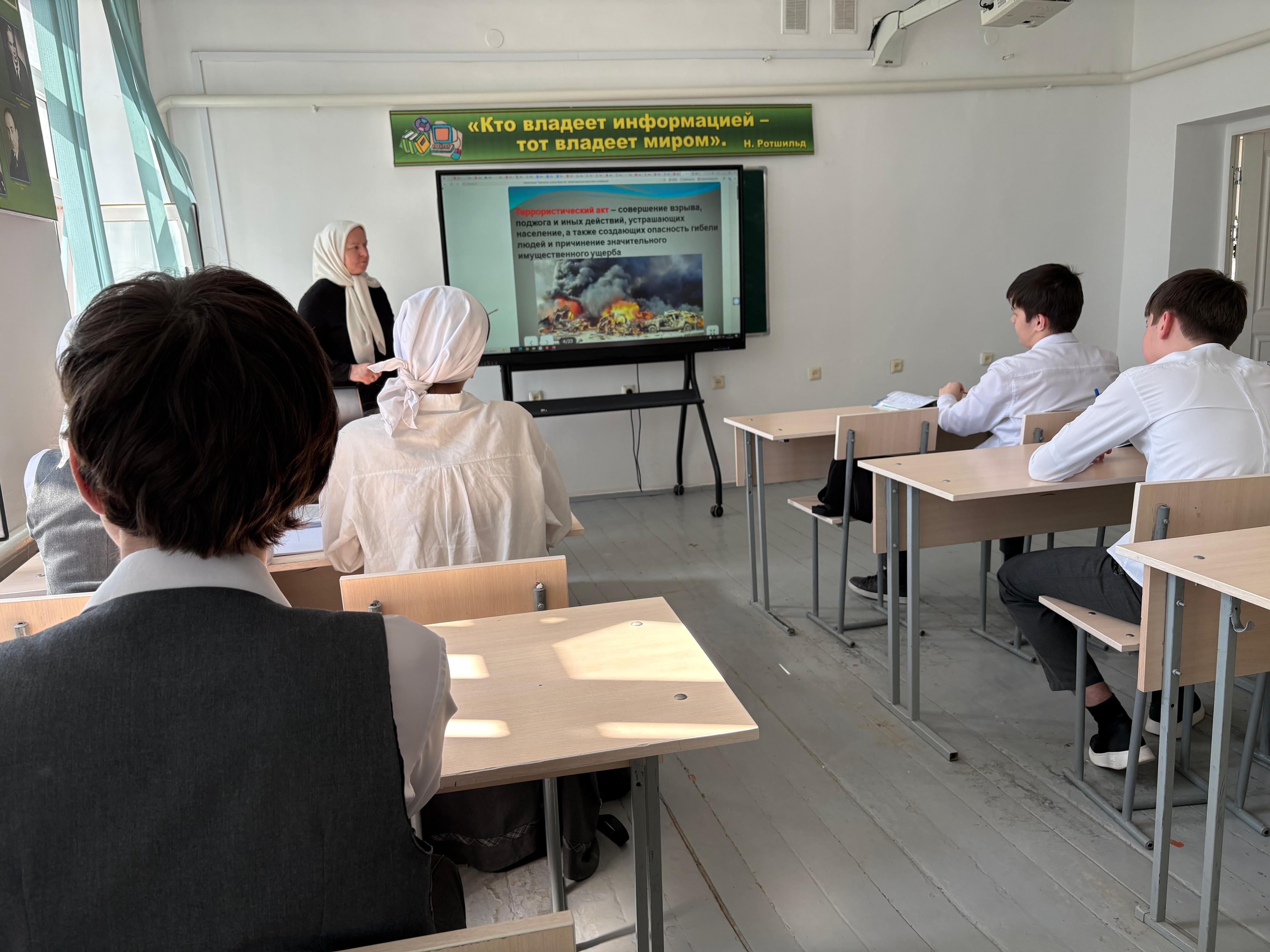 В МБОУ «СОШ №1 с. Бердыкель» прошли классные часы по профилактике терроризма и экстремизма, в ходе которых обучающиеся обсудили вопросы личной и общественной безопасности, важность уважения к людям разных культур и взглядов, а также ответственность за распространение противоправных идей, что способствует формированию правовой грамотности и гражданской ответственности.