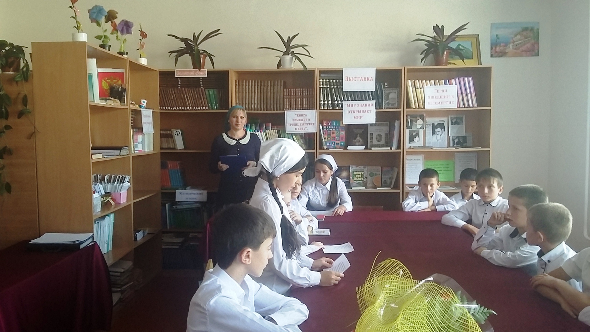 В библиотеке МБОУ "СОШ с. Комсомольское" Грозненского муниципального района прошла выставка "Мир знаний открывает мир".Подготовила и провела выставку Зав.библиотекой Оздамирова Мадина Б
